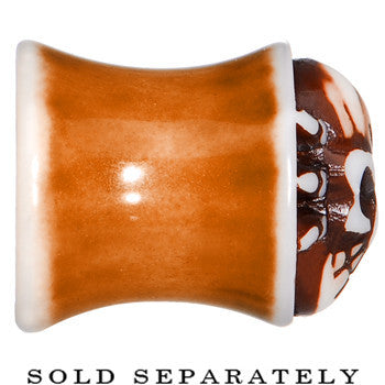 00G Brown White Resin Skull Saddle Plug