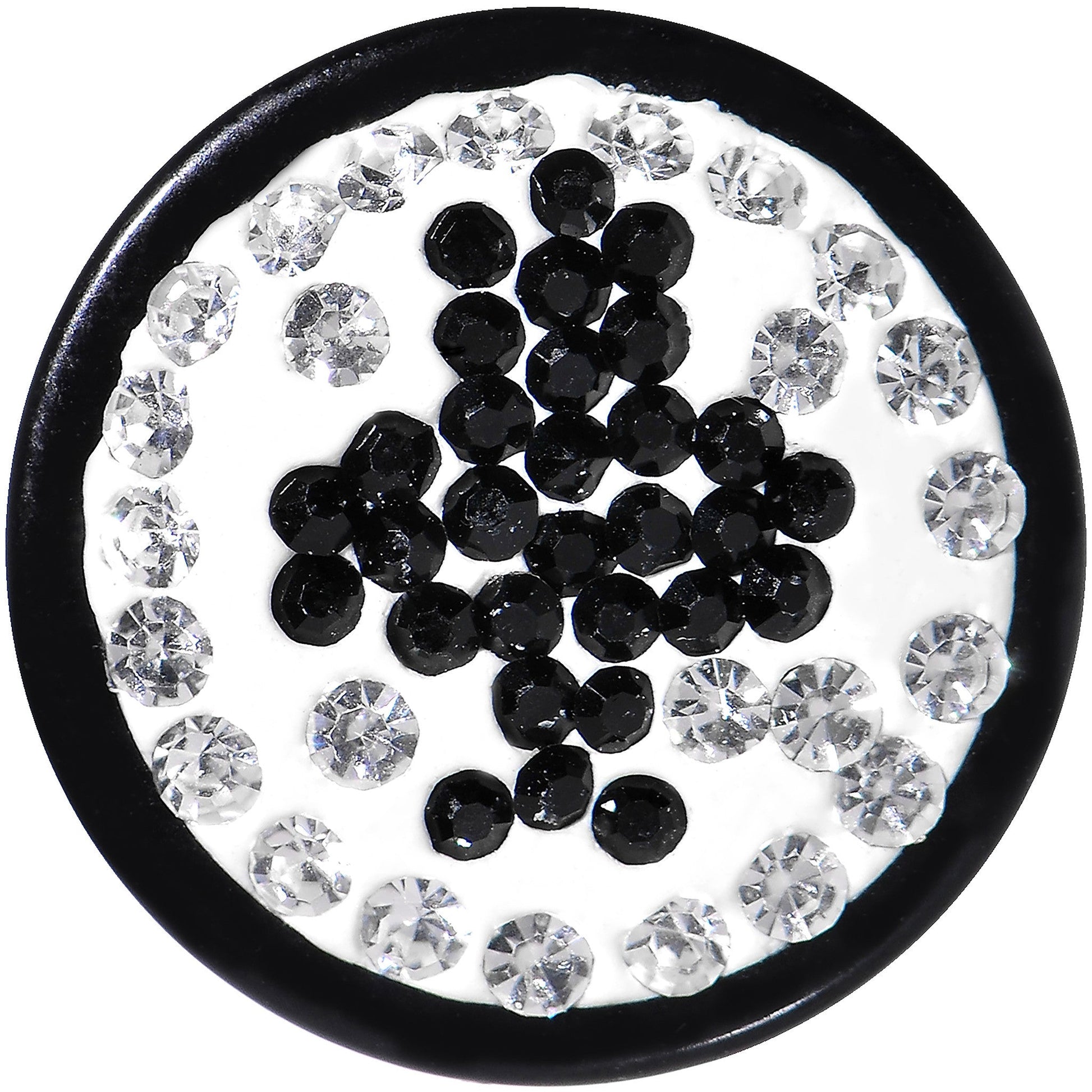 00 gauge plug with a poker playing card black club design in Austrian crystals. Stand out from the crowd with this eye-catching Austrian crystal plug. Item is sold individually. Crystal paved poker card symbol saddle plug.