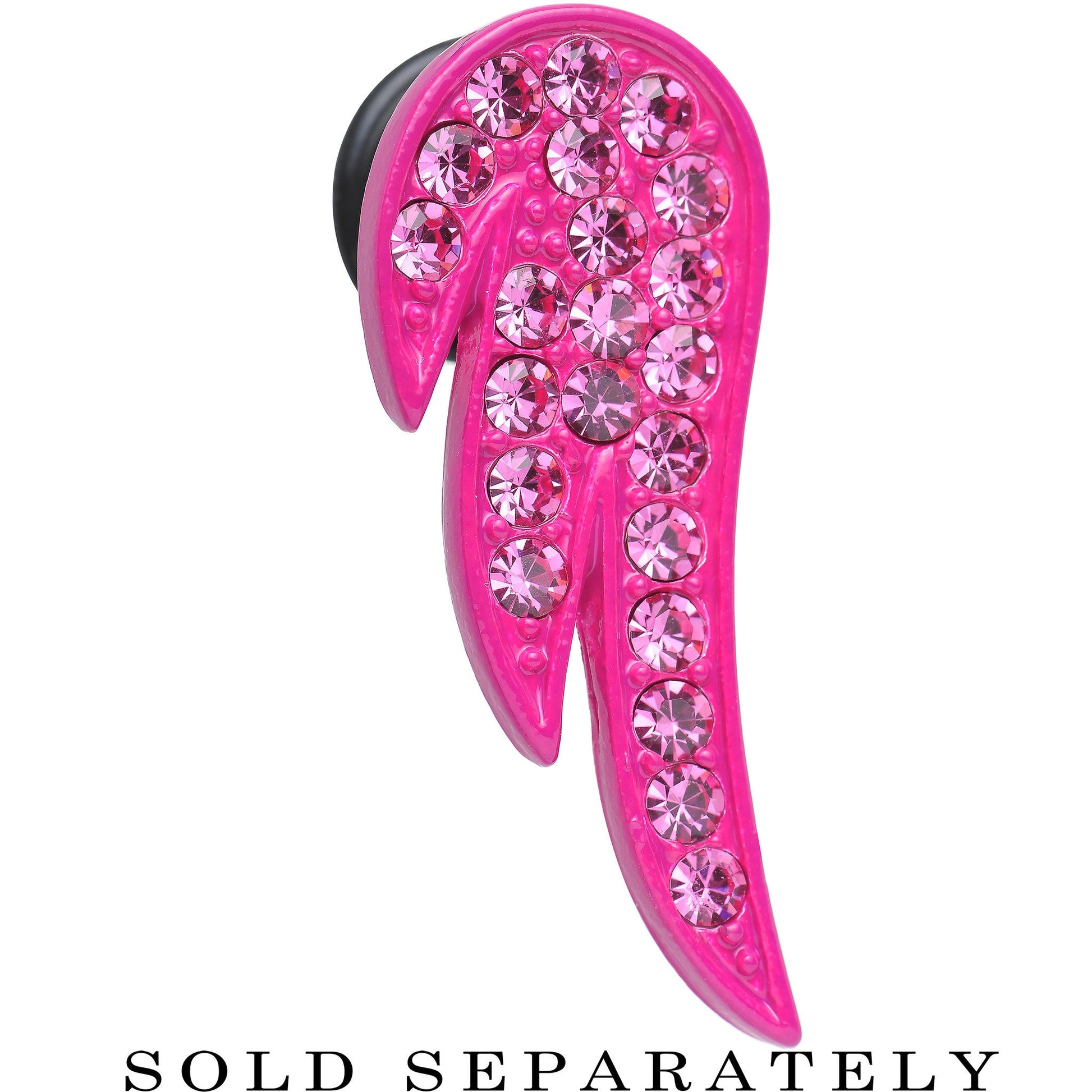 Item sold individually, purchase two for a pair. Never leave your guardian angel far behind with this 10mm pink enamel angel wing stainless steel plug. The heavenly single flare ear stretcher features a solitary bright pink wing studded with twinkling pink gems. Pierced ear expander ear gauge tunnel plug includes one rubber O-ring.