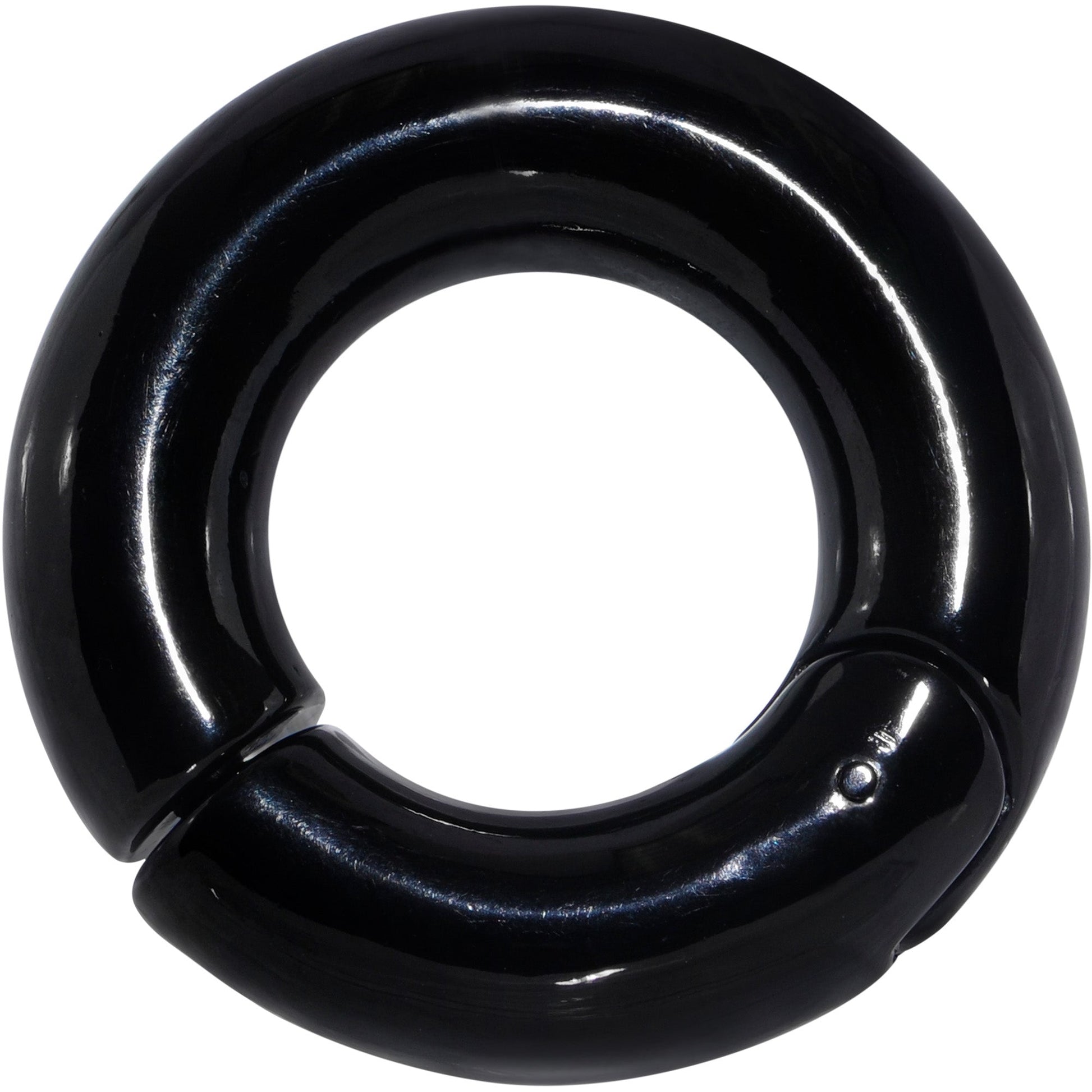 Look no further if you seek body jewelry for your larger gauge piercings because this 0 gauge body piercing ring is perfect! It's made with a 16mm black PVD over 316L surgical grade stainless steel circular ring that features a hinged, non-removable segment which makes it super easy to insert and remove. Your larger gauge or stretched piercing is nothing to worry about with the classic style of this universal body piercing ring!Specifications