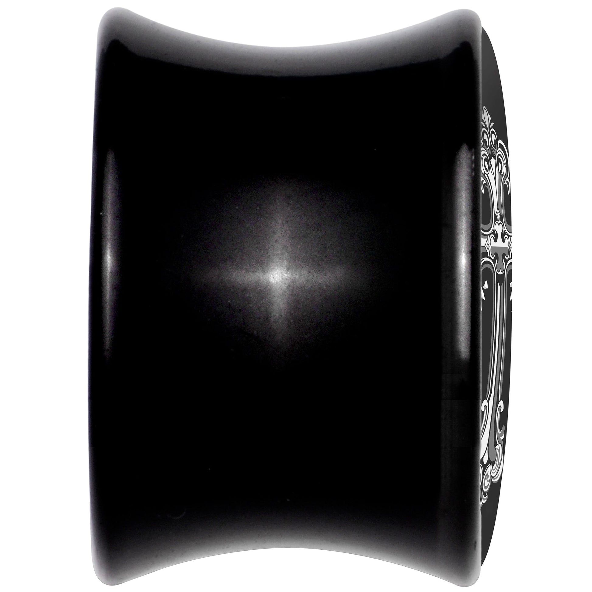 0 Gauge Black White Winged Cross Black Acrylic Saddle Plug Set