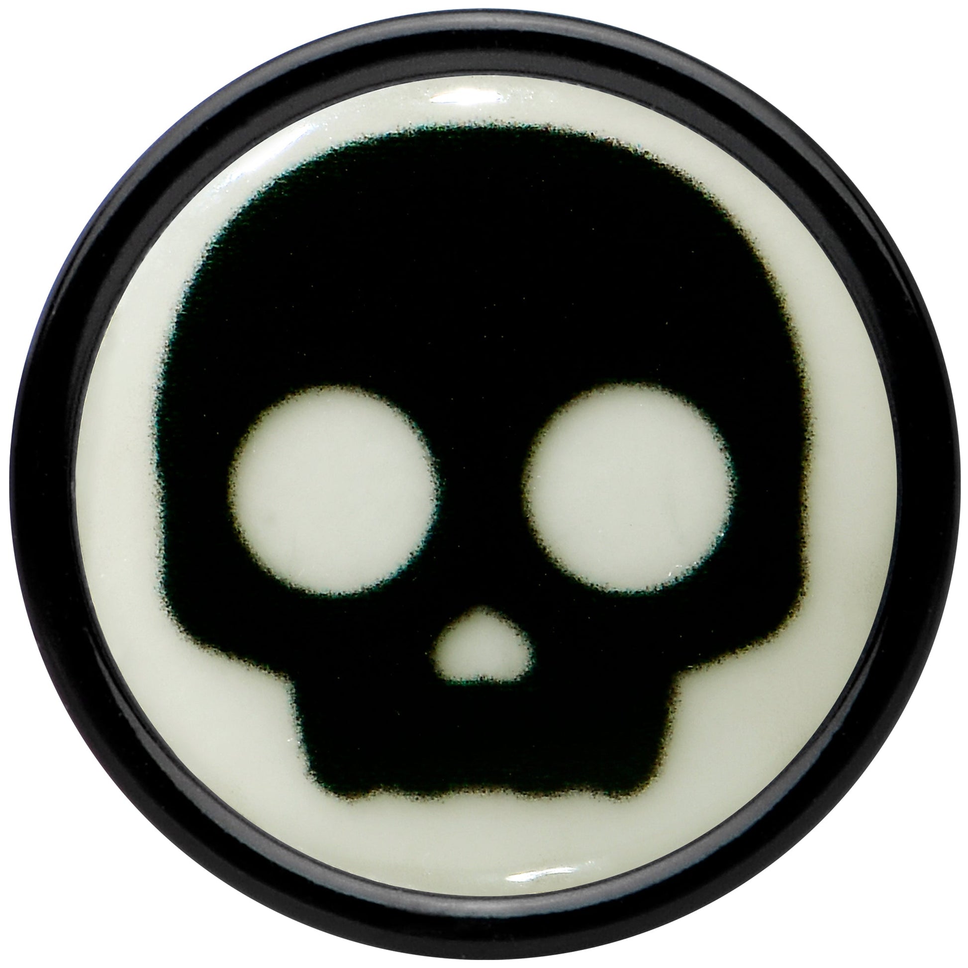 0 Gauge Glow in the Dark Simple Skull Black Acrylic Saddle Plug Set