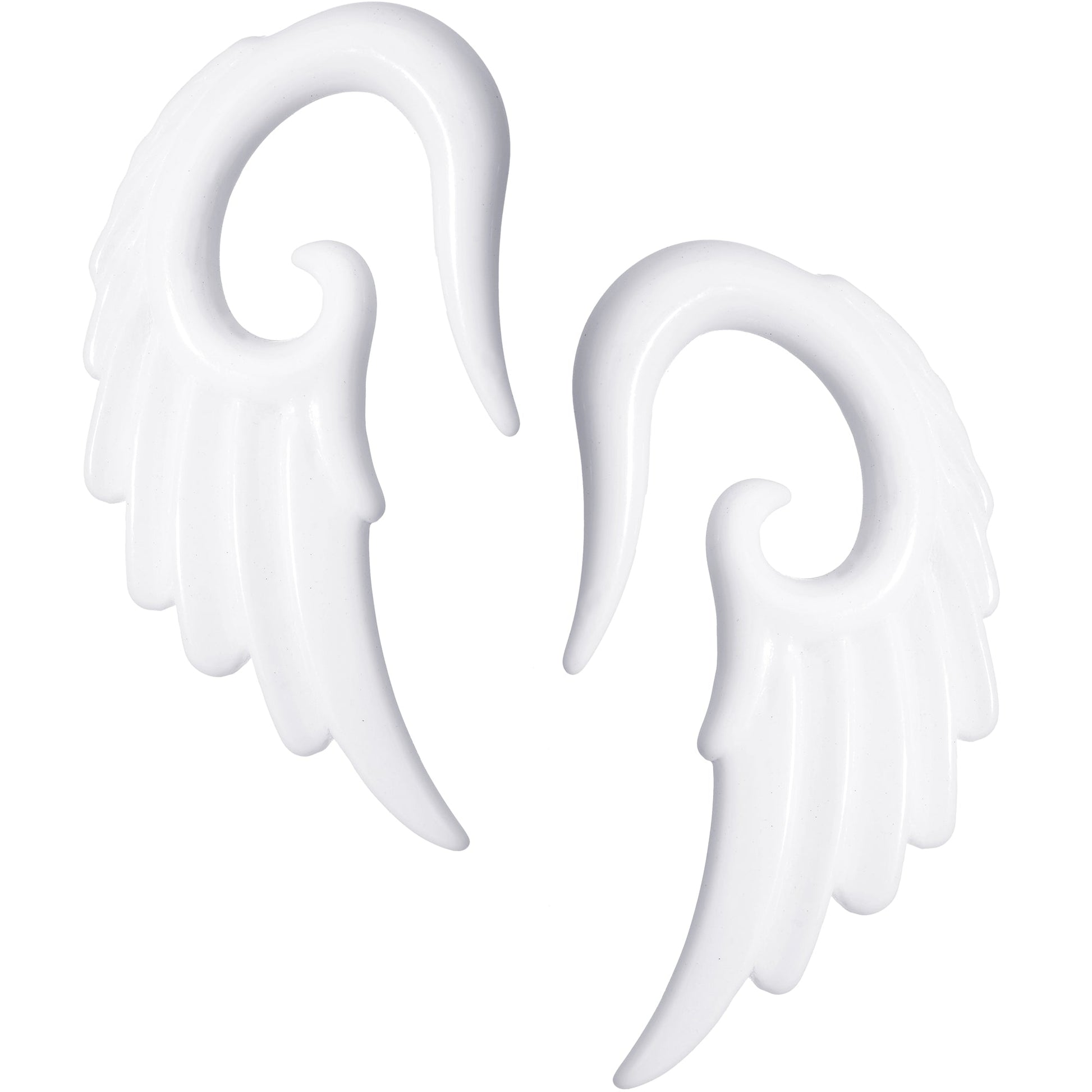 Hypoallergenic jewelry for sensitive skin.8mm white acrylic ear expander hanger plug features a beautiful angel wing. Taper plug ear stretcher Body Jewelry. 0 gauge curved taper in acrylic for lightweight comfort.