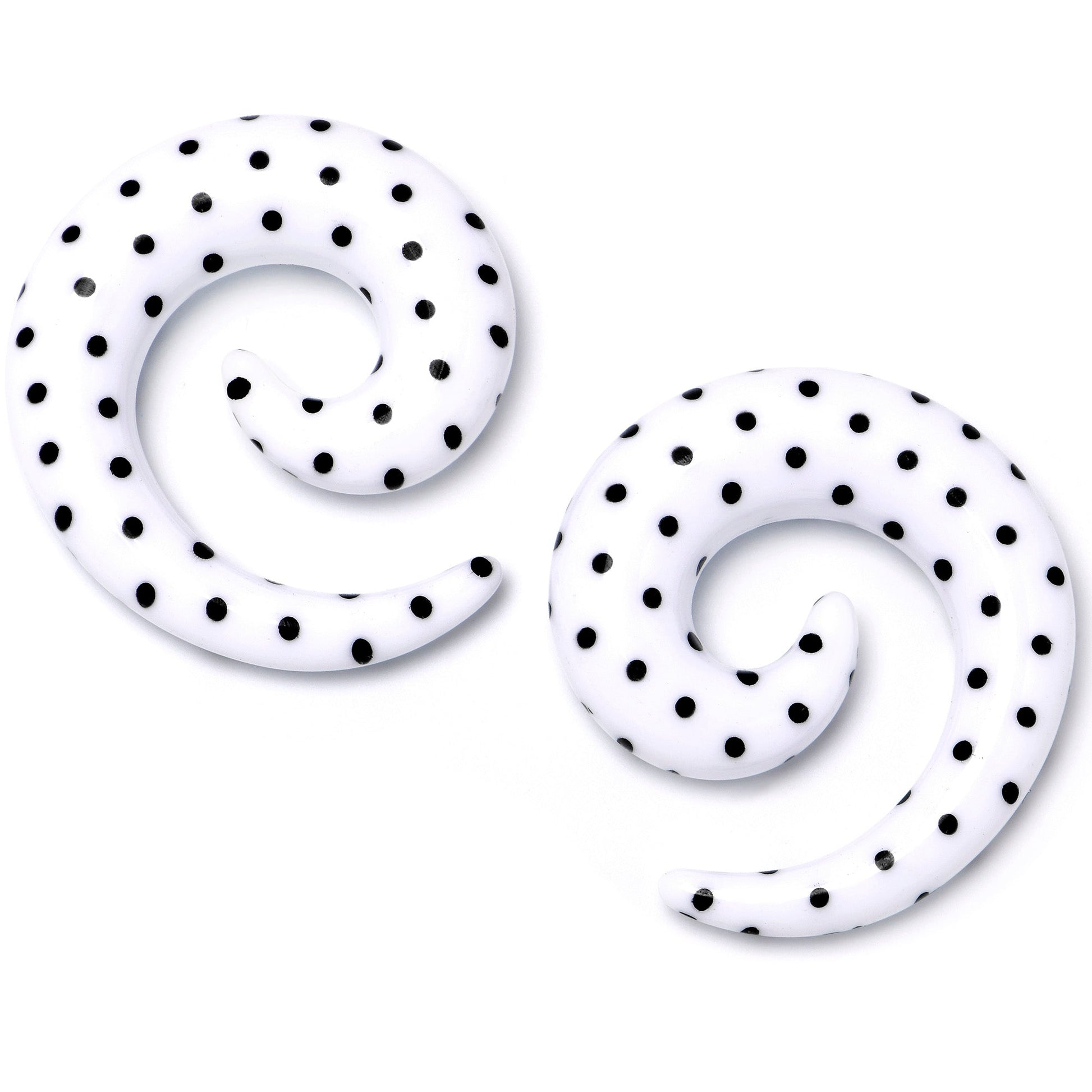 Hypoallergenic jewelry for sensitive skin.0 Gauge White Acrylic Polka Dots Black Spiral Taper Set