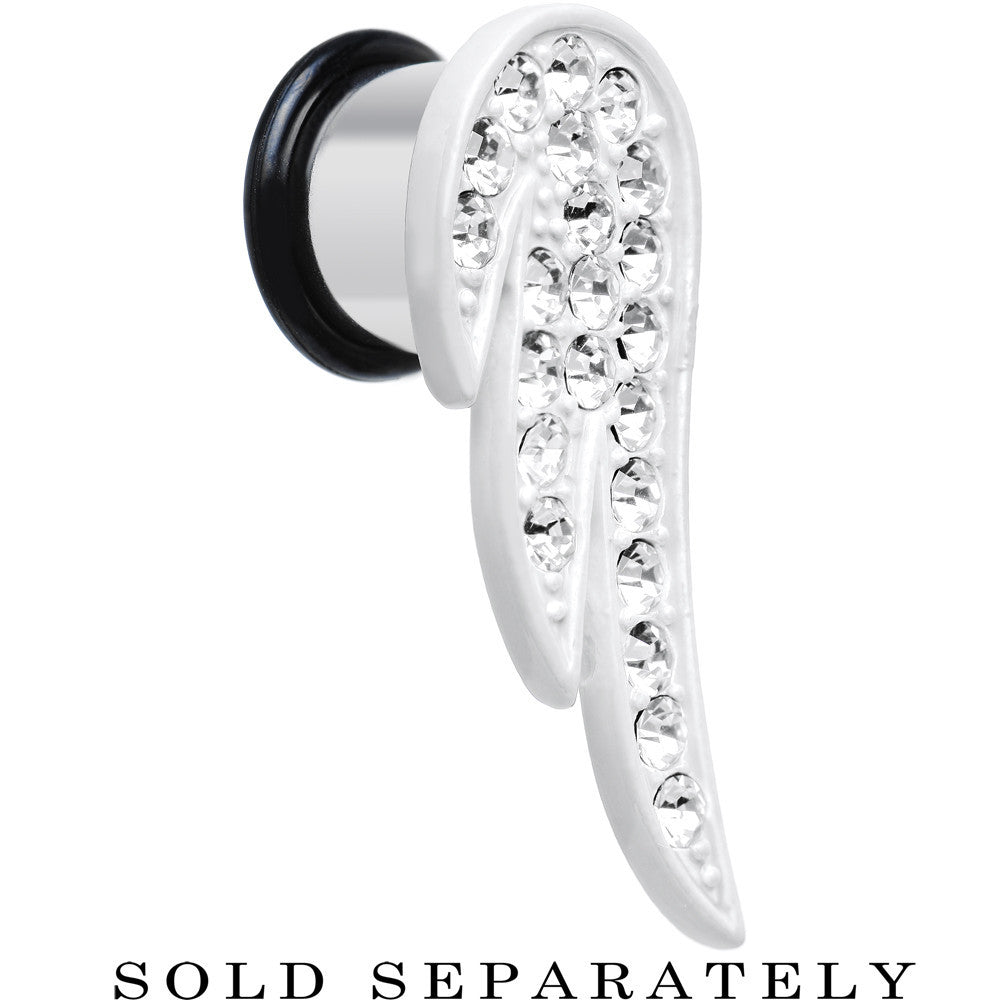 Item sold individually, purchase two for a pair. Never leave your guardian angel far behind with this 12mm white enamel angel wing stainless steel plug. The heavenly single flare ear stretcher features a solitary brilliant white wing studded with twinkling clear gems. Pierced ear expander ear gauge tunnel plug includes one rubber O-ring.