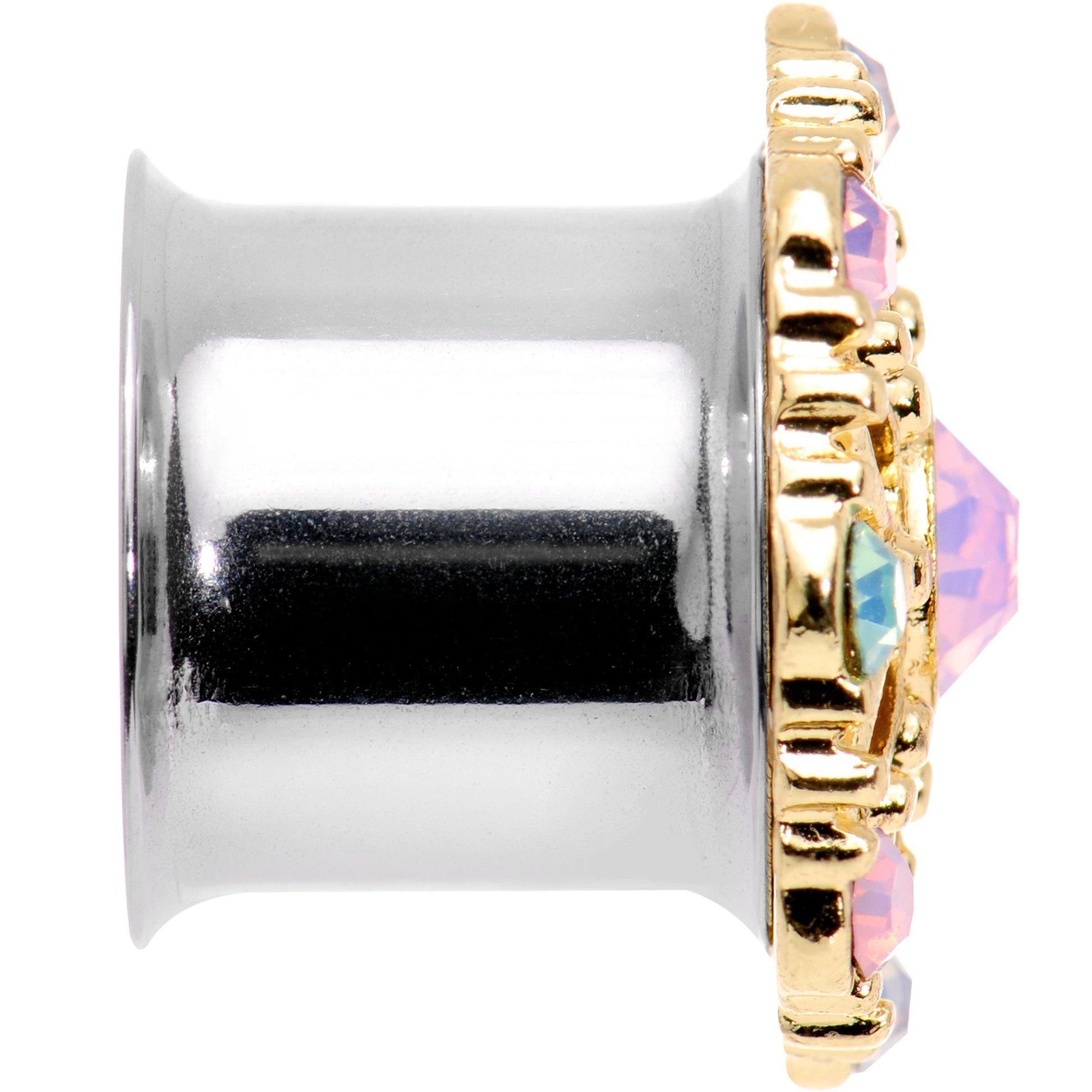 1/2" Pink Green White Gem Glam Flower Double Flare Tunnel Plug Set