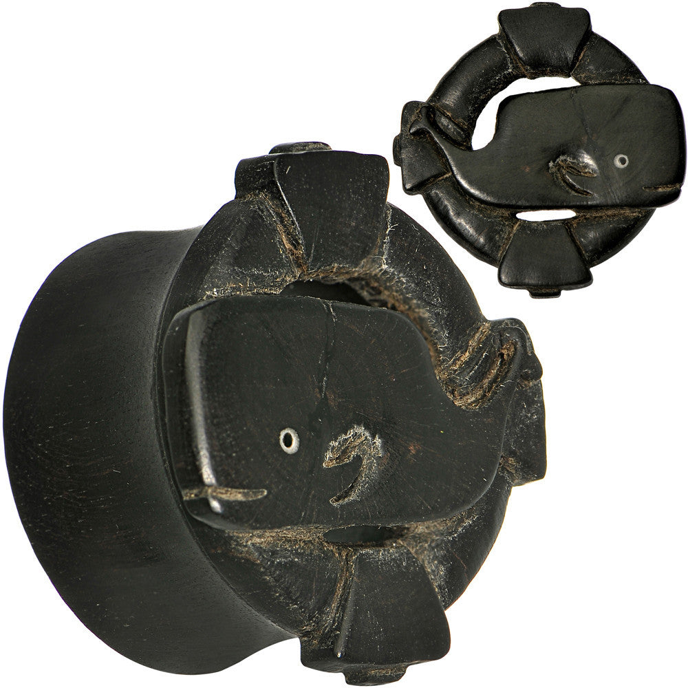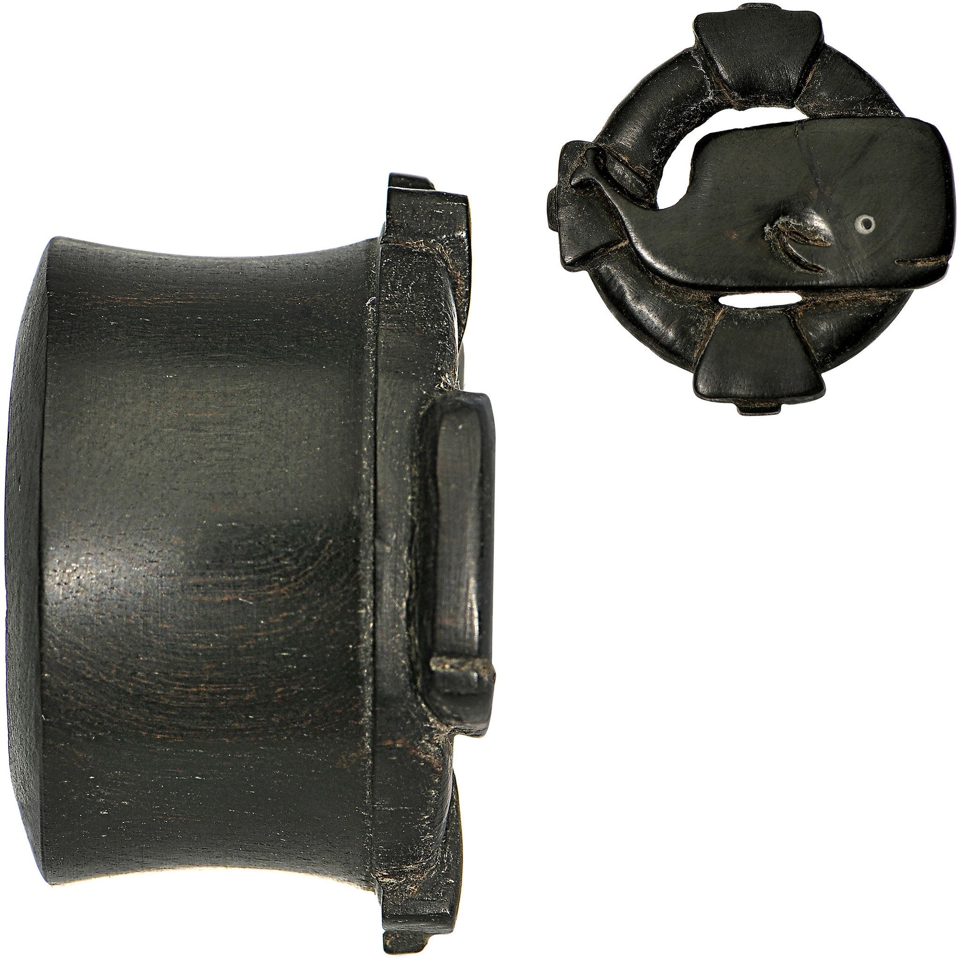 Urban Star organic ear plugs, 25mm left and right double flare tunnel ear plug set. These cheerful whale ear stretchers are created from natural black areng wood. Pierced ear expander body jewelry sold as a pair of two. Animal themed Urban Star jewelry is handcrafted by highly experienced artisans.