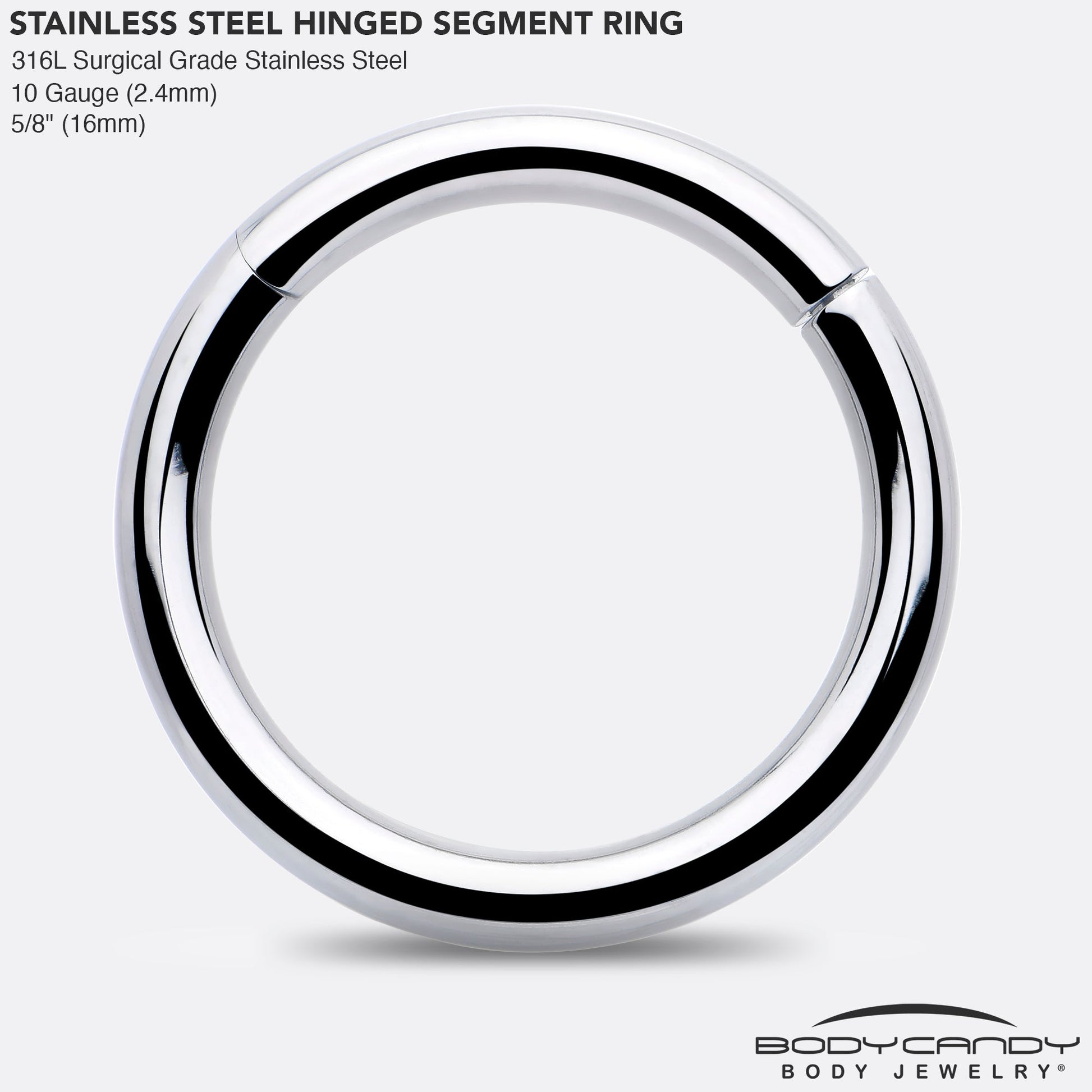 10 Gauge (2.5mm), 5/8" (16mm), Precision Hinged Closure, 316L Surgical Grade Stainless Steel