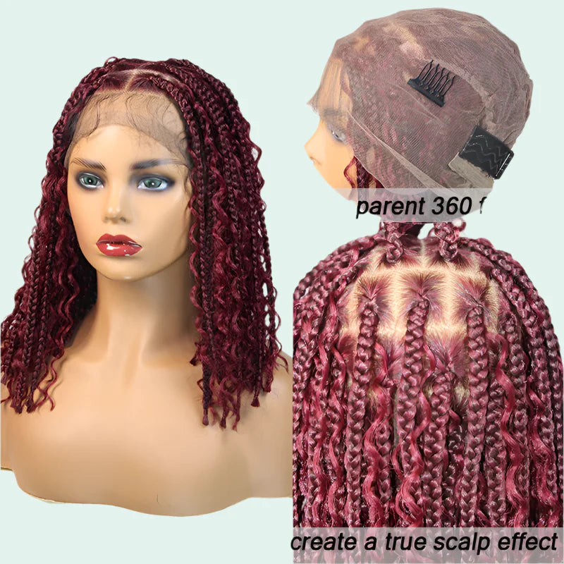 12" Goddess Boho Bob Braids Wig | 360 Lace Frontal | Curly Ends | Ombre & Color Options | Baby Hair
