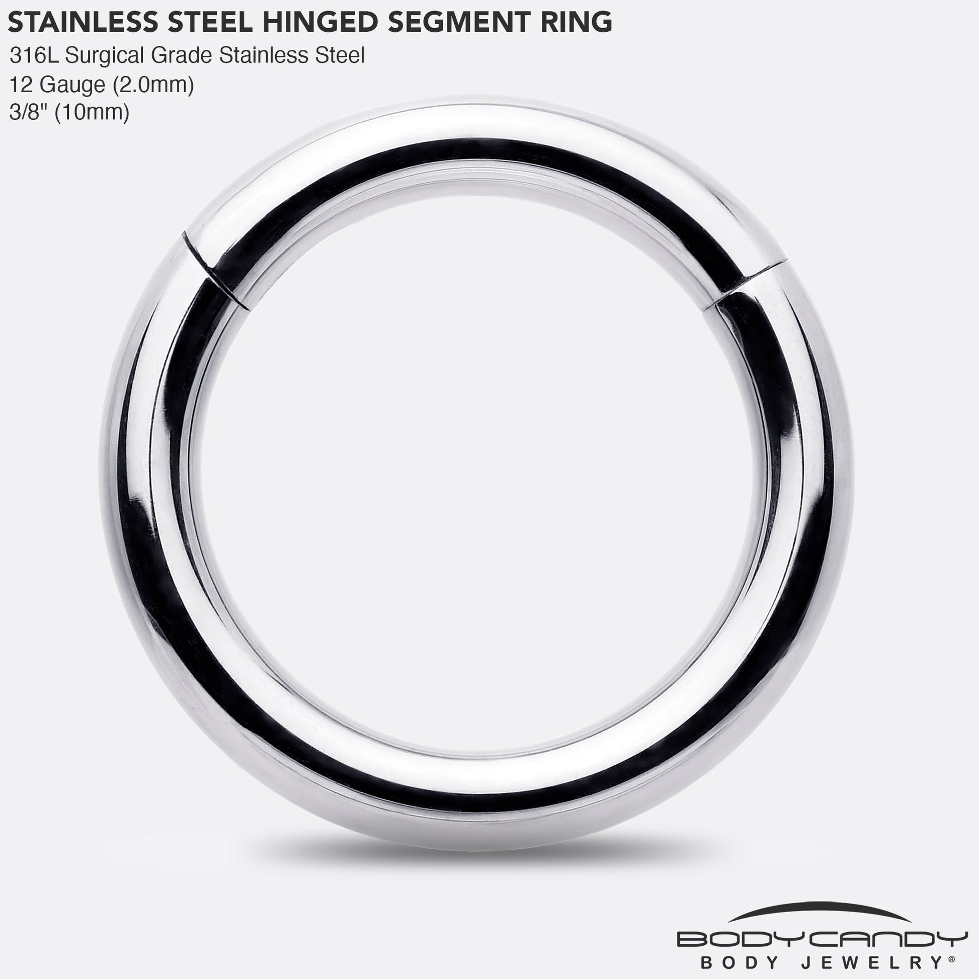 12 Gauge (2.0mm), 3/8" (10mm), Precision Hinged Closure, 316L Surgical Grade Stainless Steel