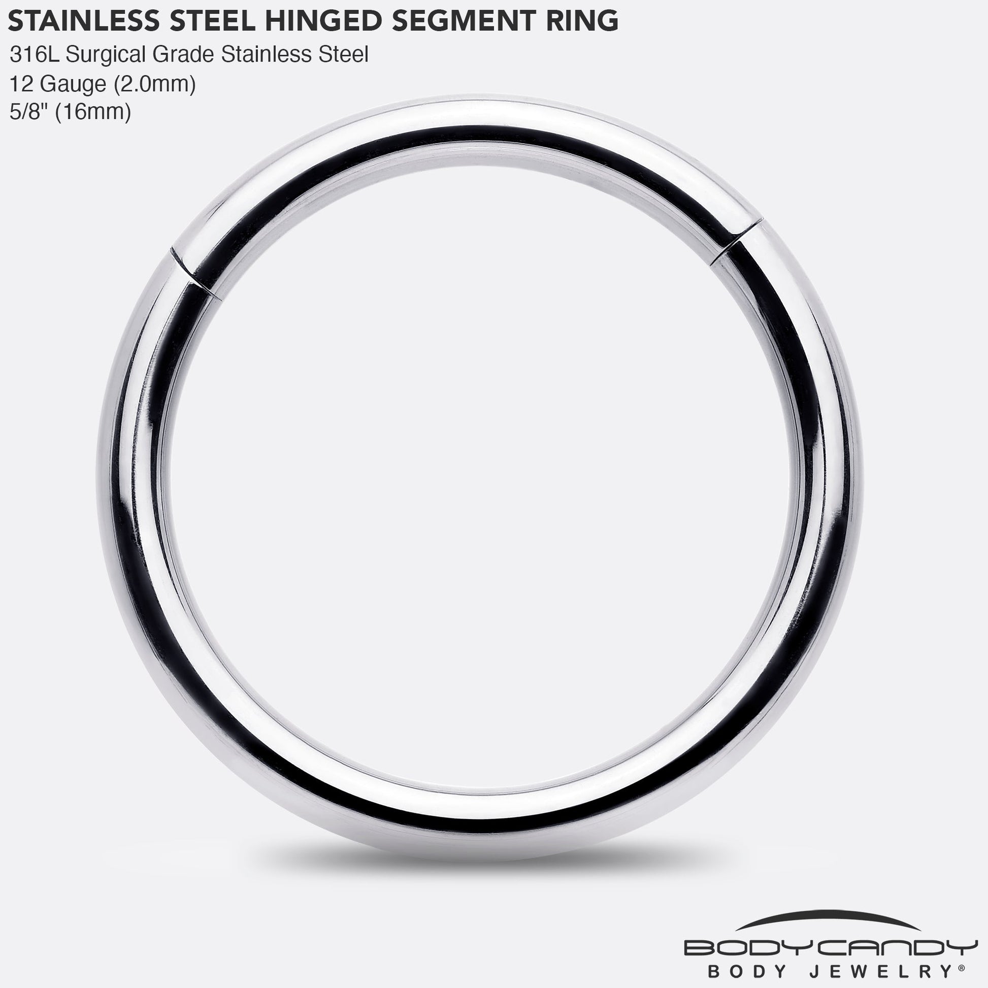 12 Gauge (2.0mm), 5/8" (16mm), Precision Hinged Closure, 316L Surgical Grade Stainless Steel