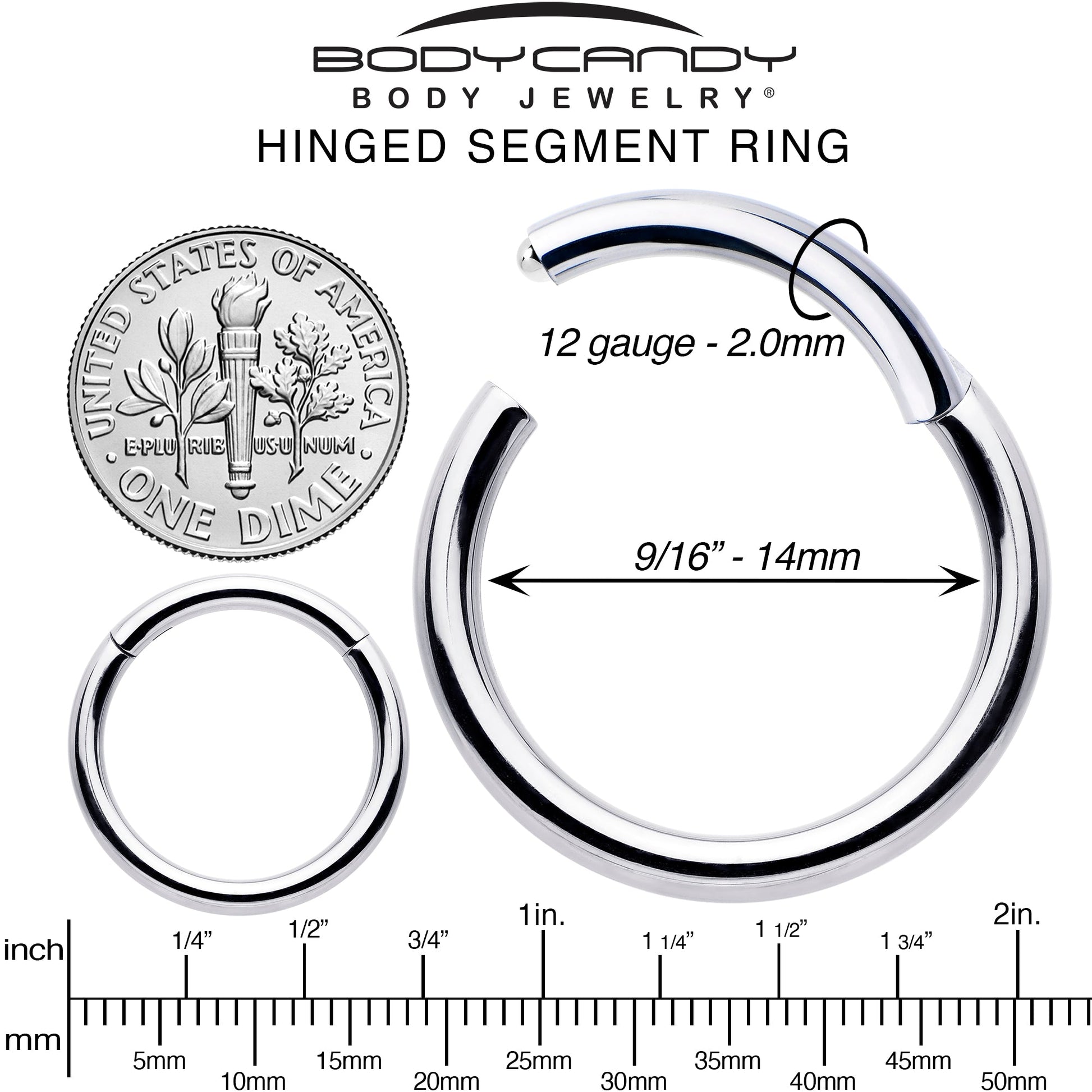 12 Gauge (2.0mm), 9/16" (14mm), Precision Hinged Closure, 316L Surgical Grade Stainless Steel