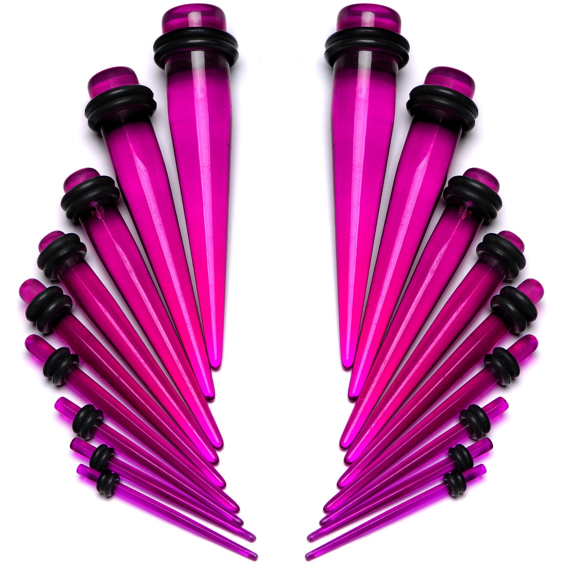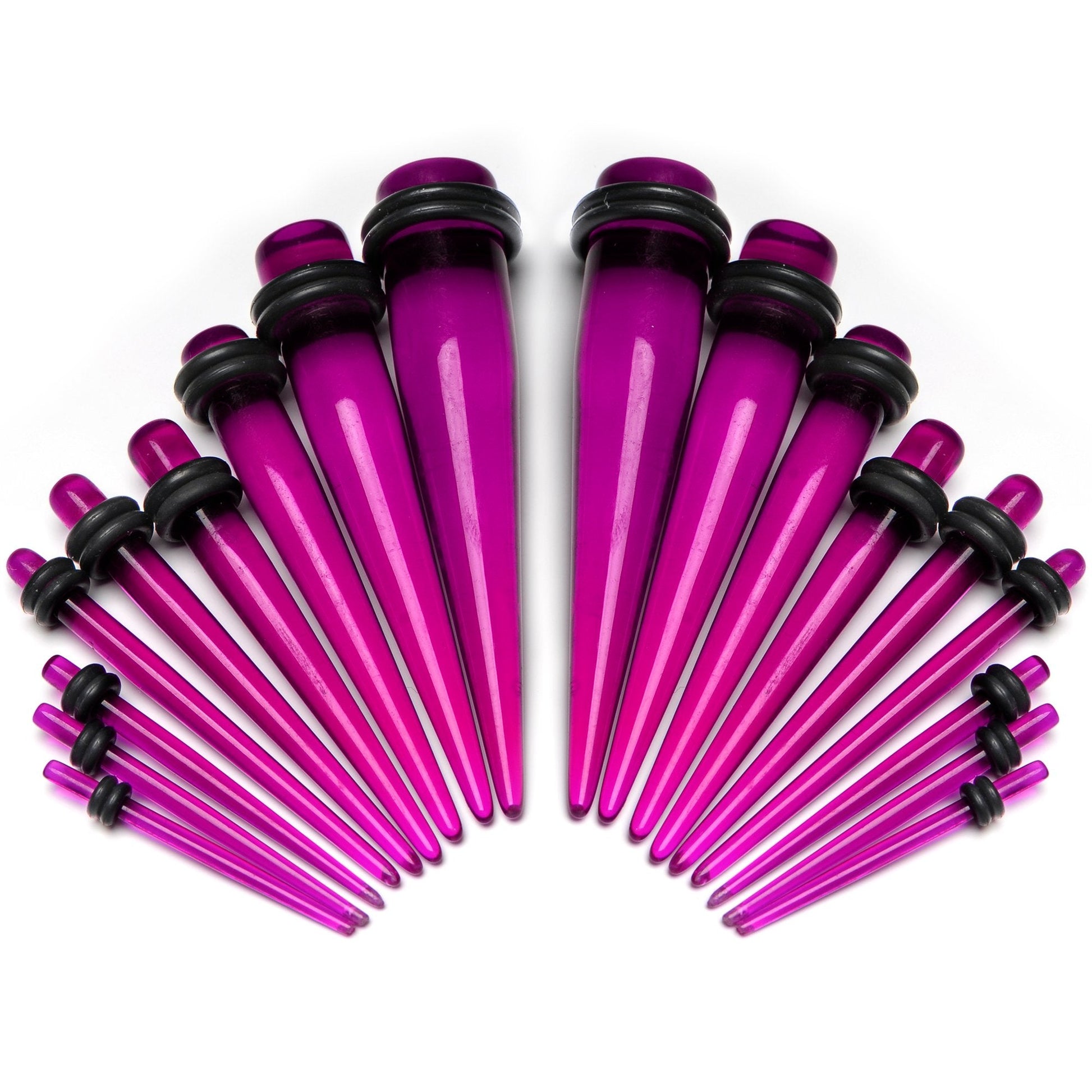 Hypoallergenic jewelry for sensitive skin.14 to 00 Gauge Fuchsia Acrylic Straight Taper Set 18 Piece Stretching Kit