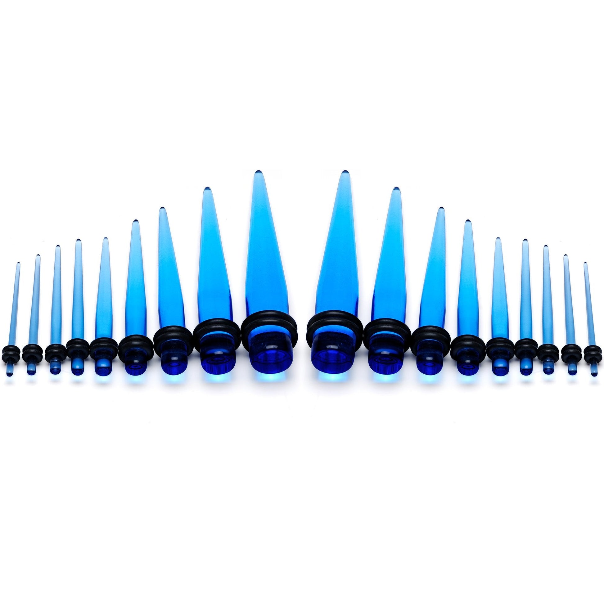 Hypoallergenic jewelry for sensitive skin.14 to 00 Gauge Light Blue Acrylic Straight Taper 18 Piece Stretching Kit