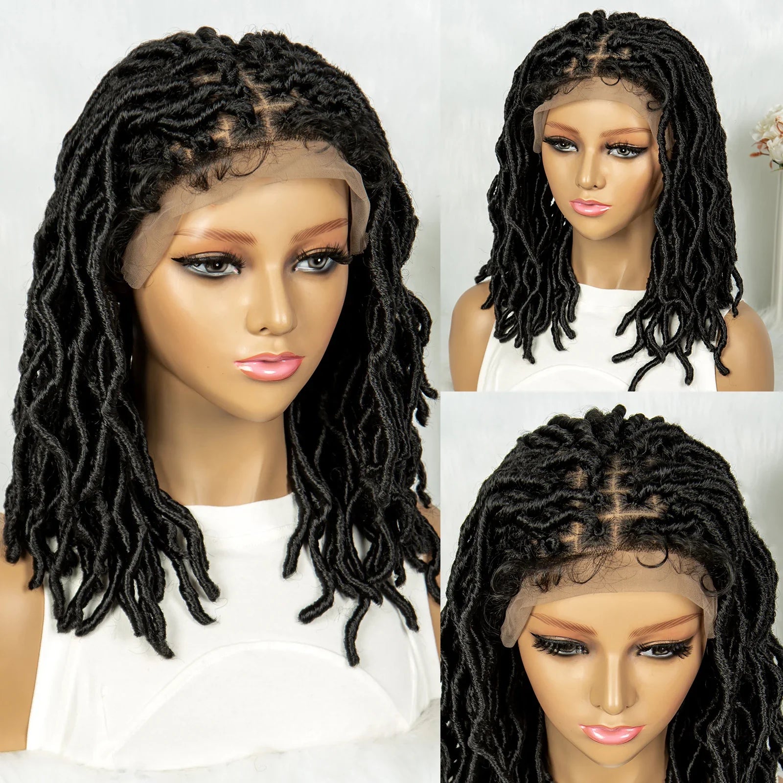 14" Twisted Box Braids Lace Front Wig | 9*6 Square Locs | Synthetic Dreadlock Braids | Black Women