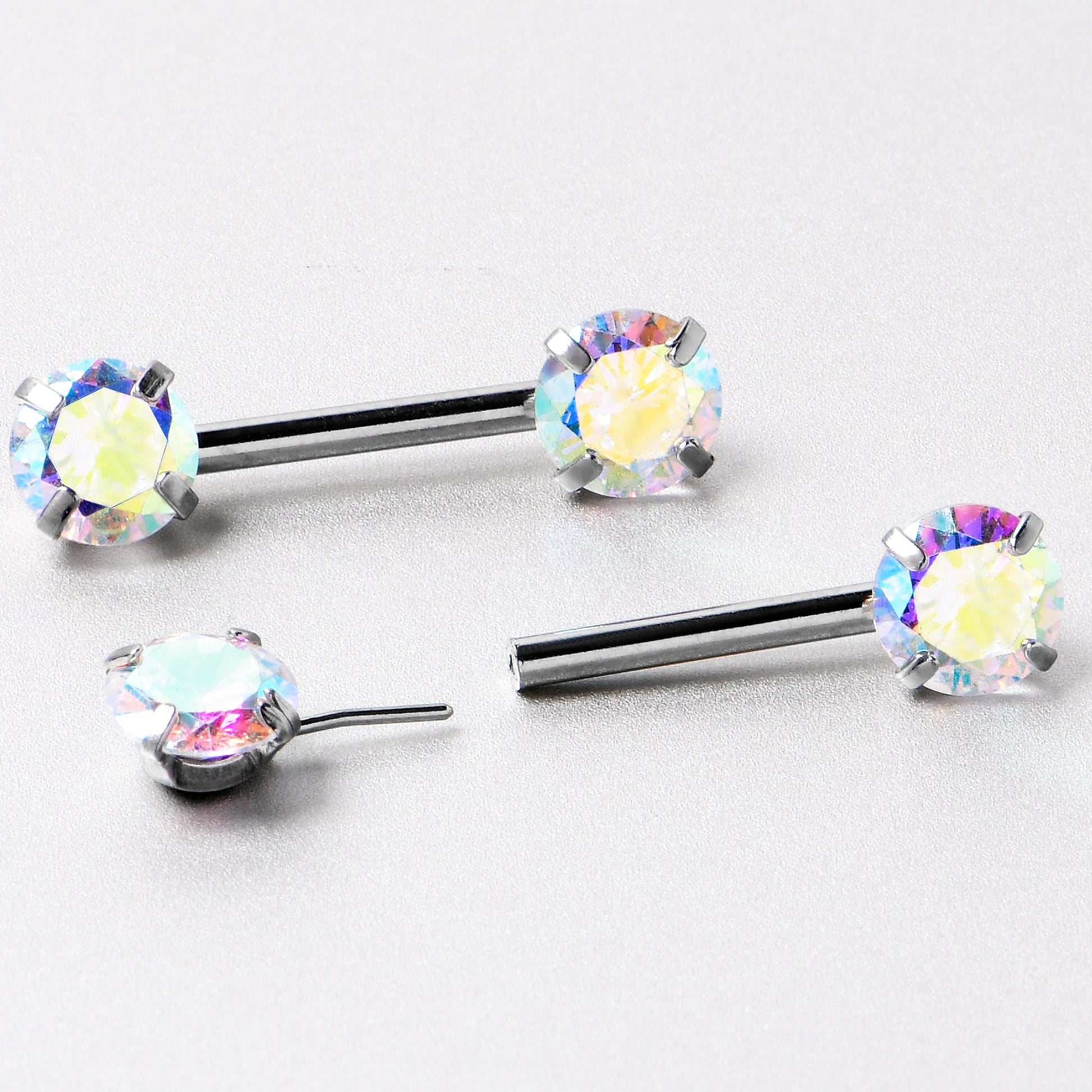14G 1/2 Aurora CZ Gem Threadless Barbell Nipple Ring Set