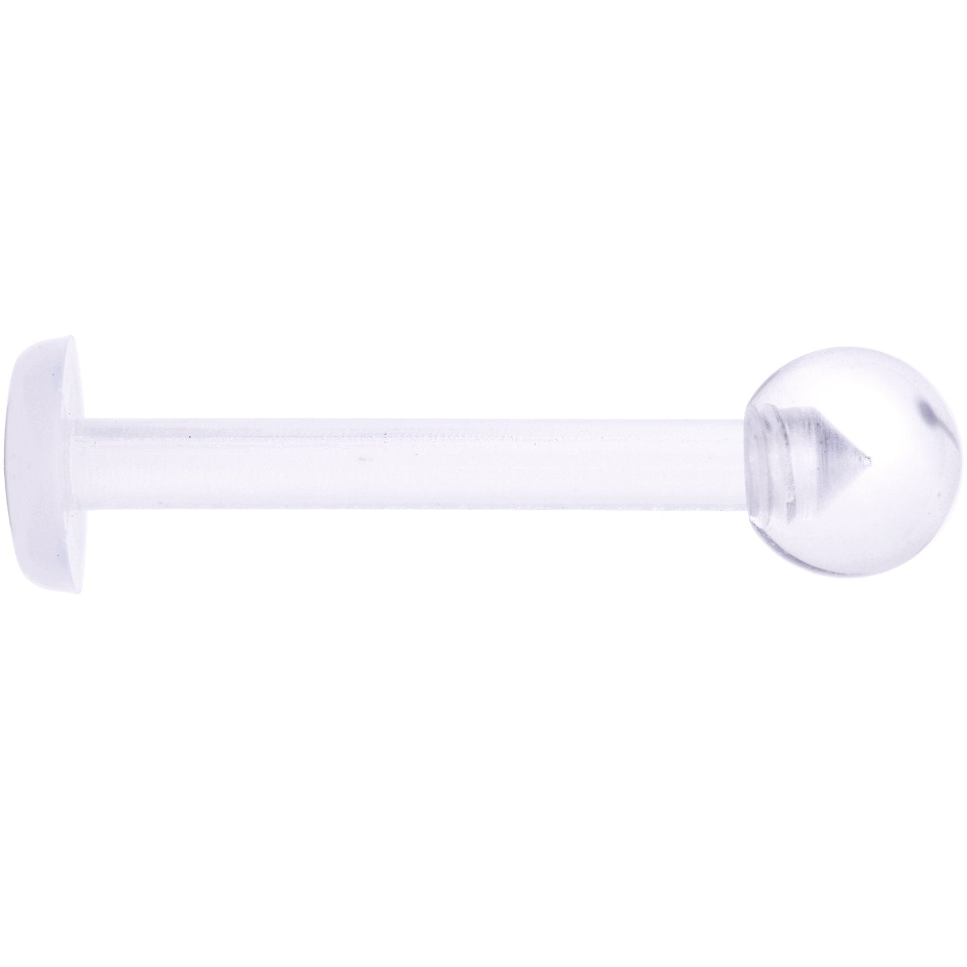 As much as we love to show off our piercings, there are times when we need to hide them as well. Now you can do that without risk of them closing with this 14 gauge flat-back retainer. It's made with a 12mm Bioplast straight barbell and has a 4mm clear acrylic ball end to make it as unobtrusive as possible. It's flexible so you don't have to sacrifice comfort for camouflage either. This is perfect for multiple piercings including tongue, nipple piercings, and more.Specifications