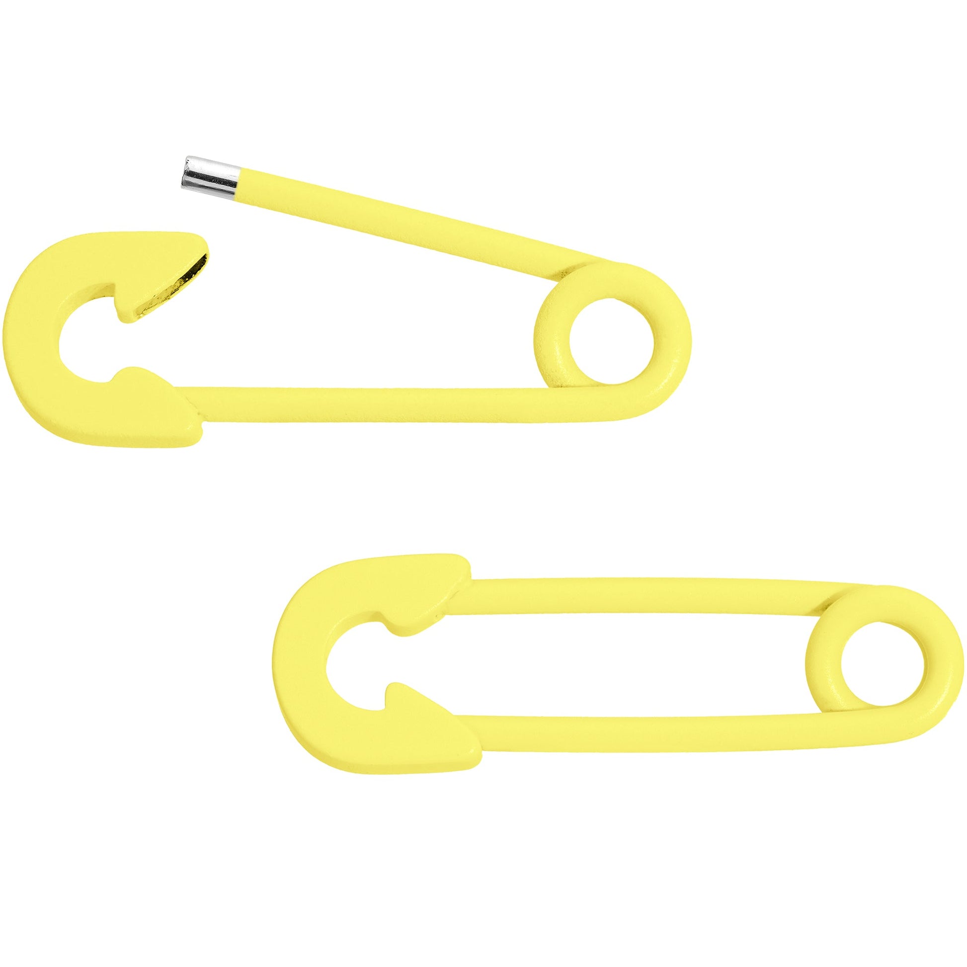 Old school punk gets a colorful update with this 14 gauge nipple jewelry! It's made with 19mm yellow matte plated over 316L surgical grade stainless steel straight barbells that are shaped exactly like giant safety pins! Guaranteed to hold your look together, these nipple rings just need a pair of combat boots and a mohawk for a trip back in time to the golden days of punk rock. Sold as a set of two.Specifications