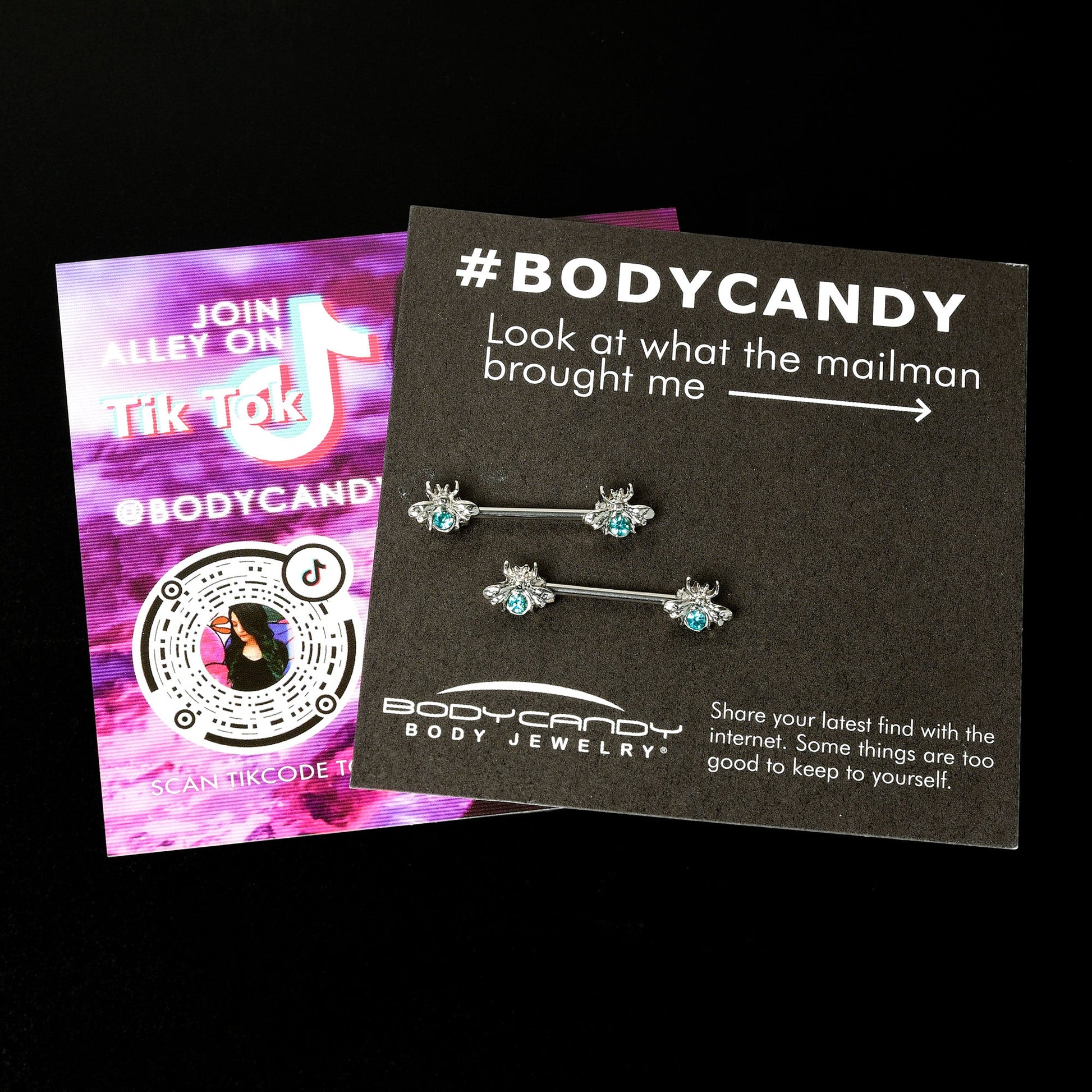 This 14 gauge nipple jewelry is sure to give you one honey of a new look! It's made with 14mm durable 316L surgical grade stainless steel straight barbells. Each of the ends features a bee charm, with the body composed of a single large blue gem. They also features stylized wings and legs for a realistic and airy appearance. These unconventional insect nipple piercing rings are sure going to make your nipple piercings look super sweet! Sold as a set of two.Specifications
