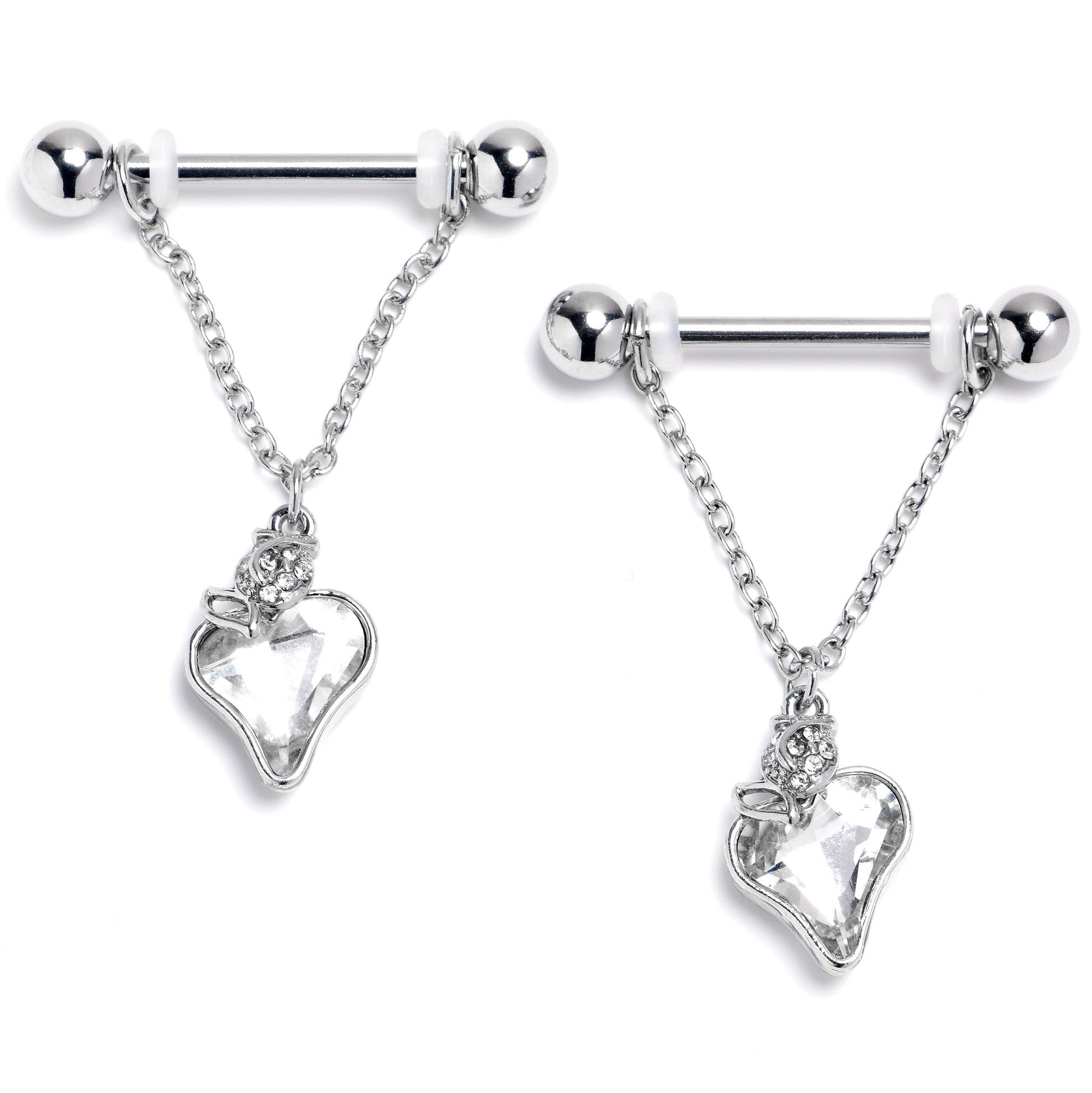 14 Gauge 9/16 Clear Gem Strawberry Love Chain Dangle Nipple Ring Set