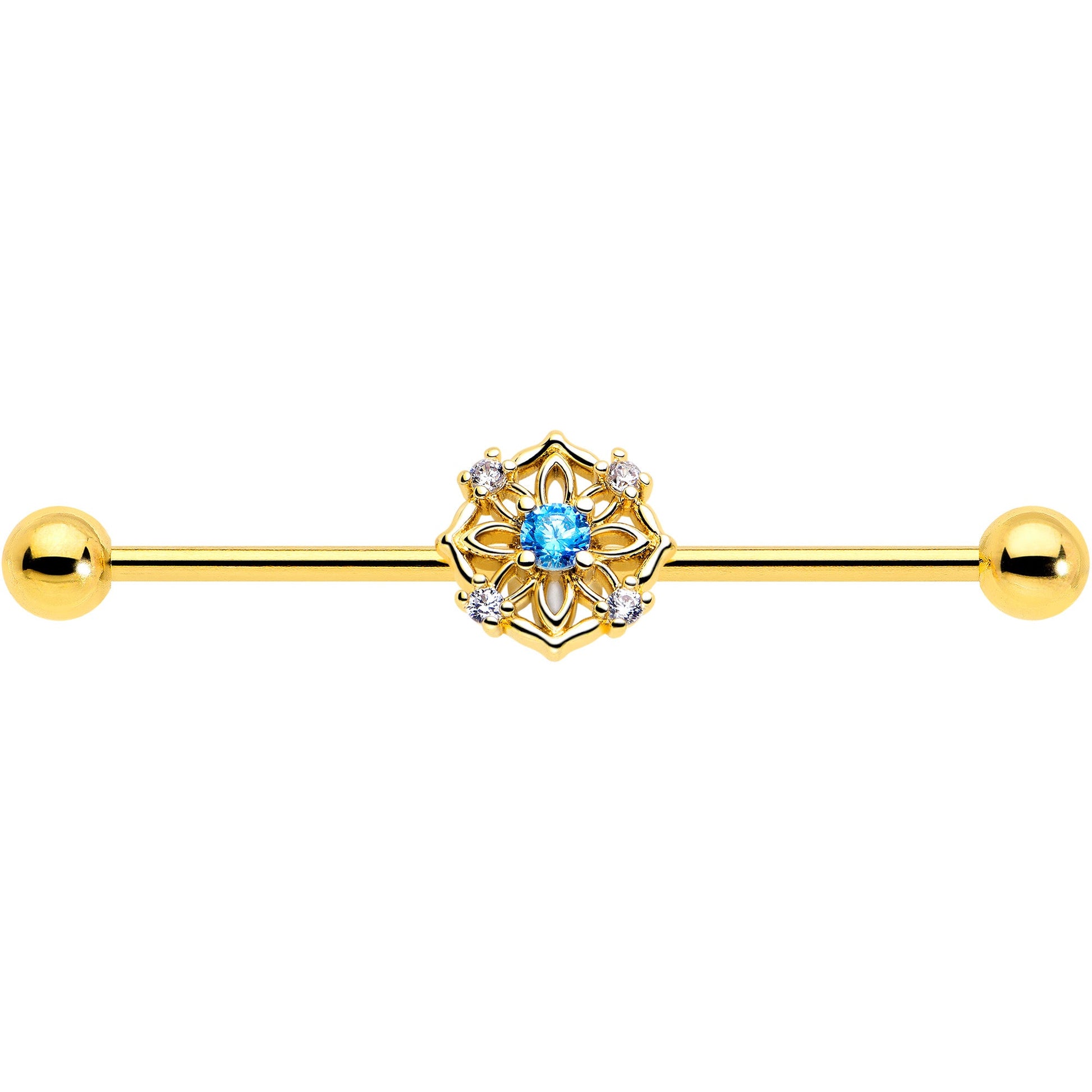 14G Blue CZ Gem Gold Tone Flower Ring Industrial Barbell 38mm