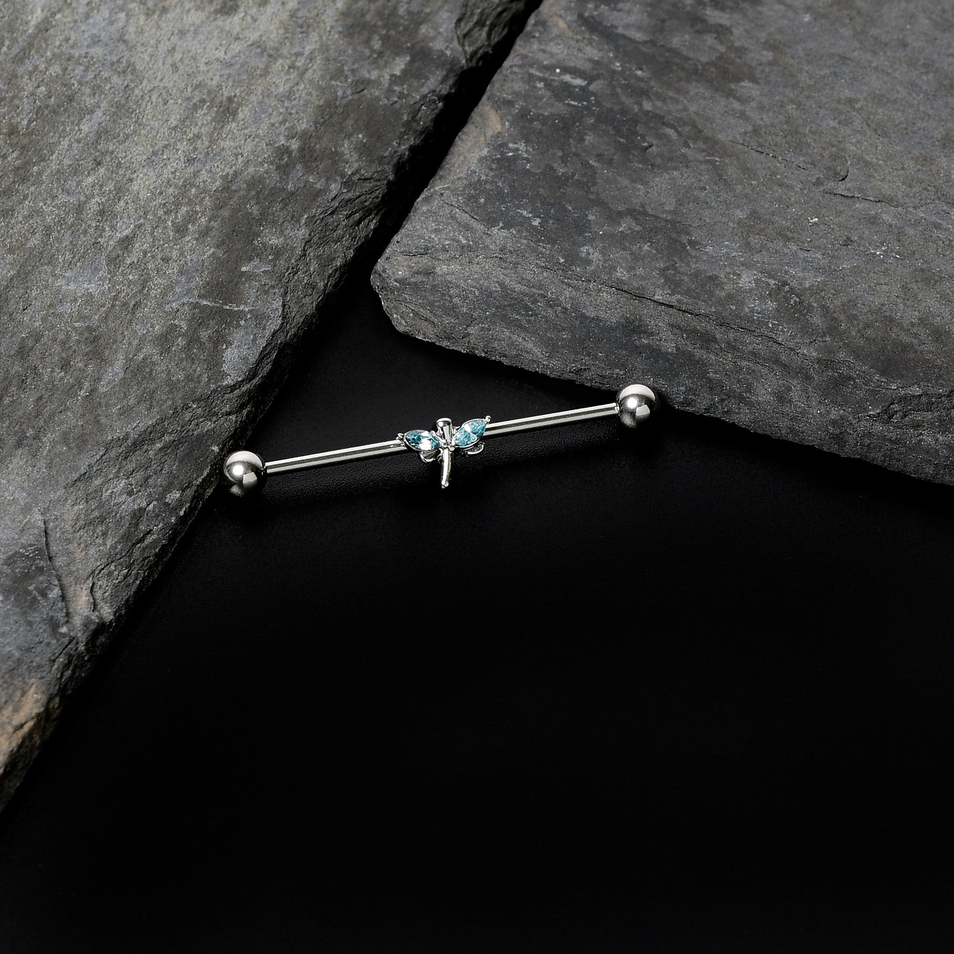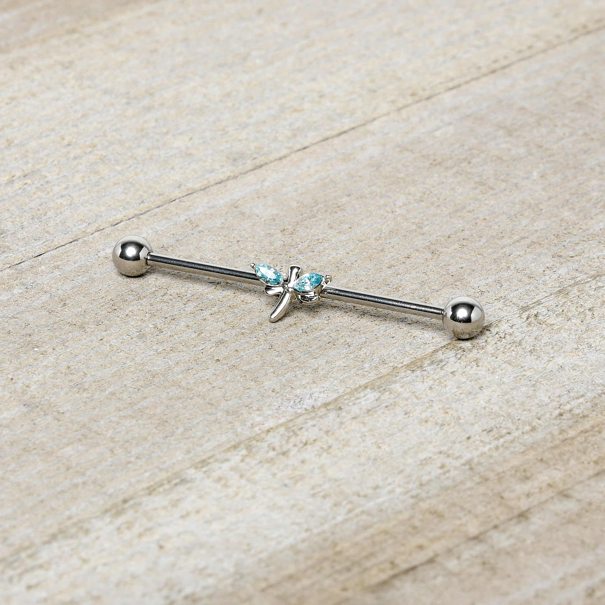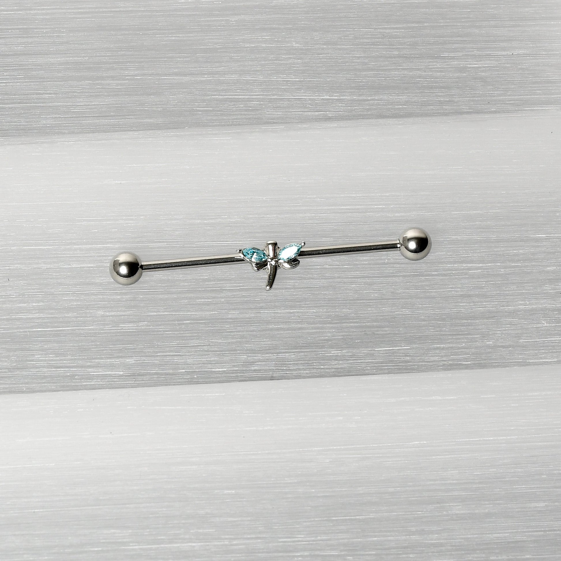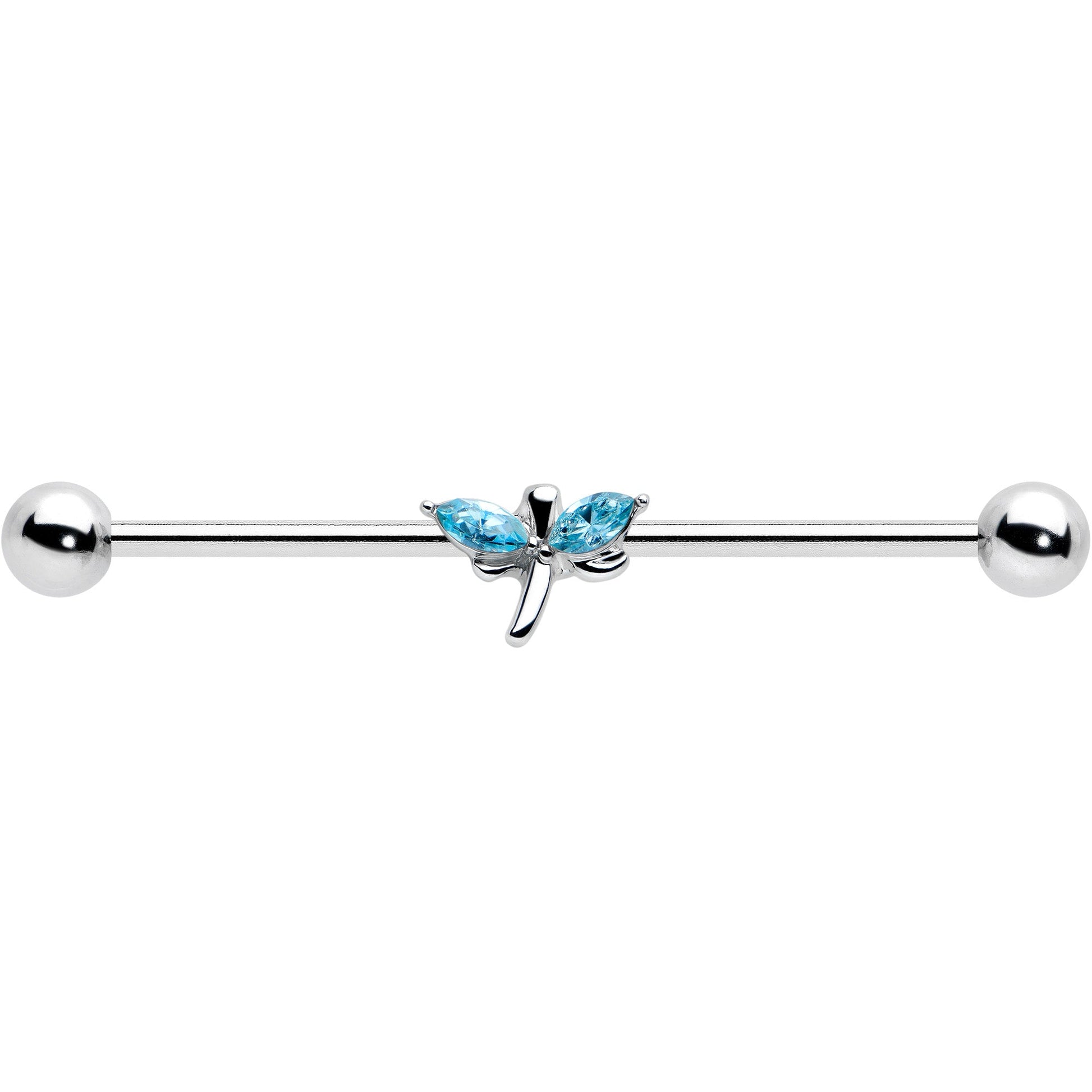 14G Blue Gem Simple Stylized Dragonfly Industrial Barbell 38mm