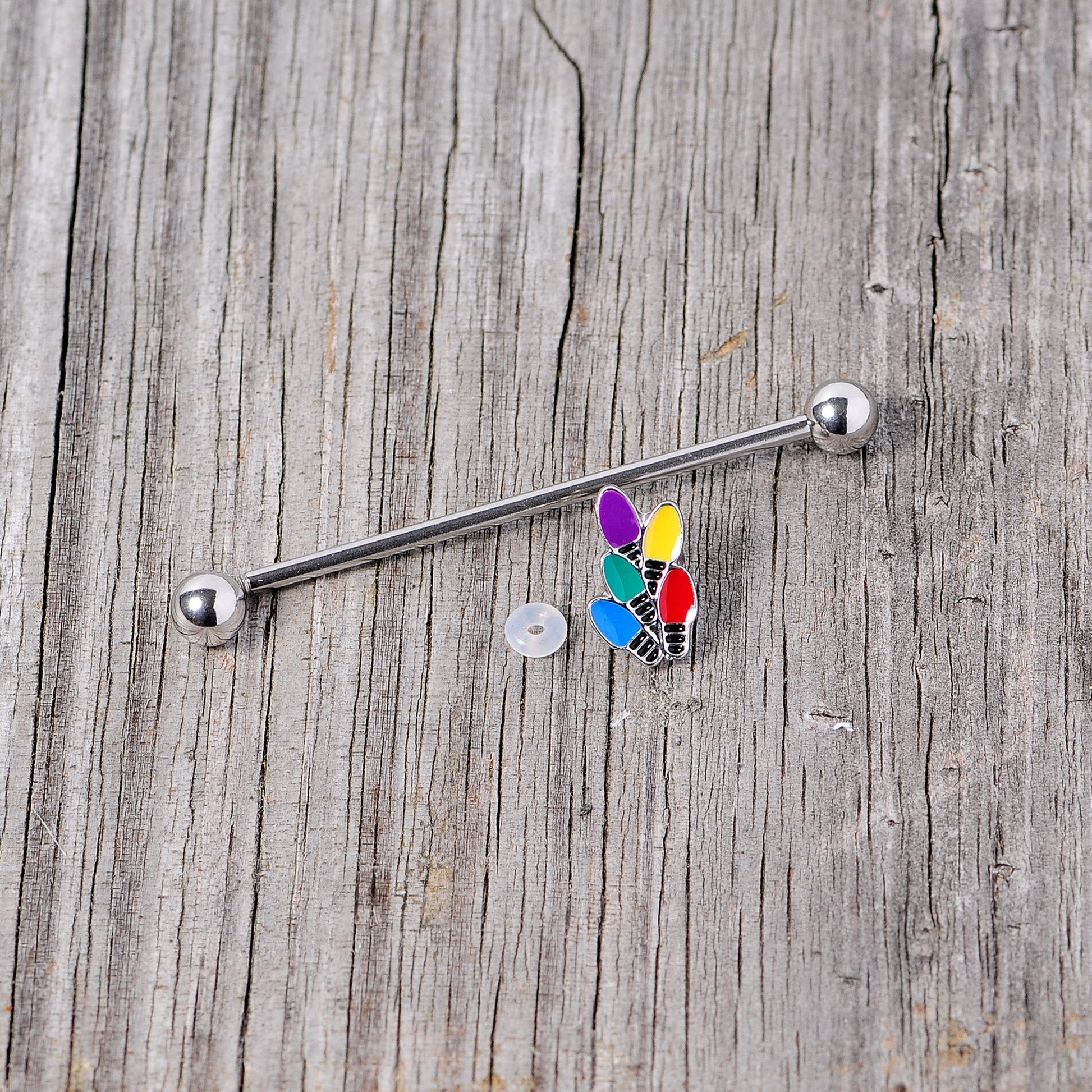 If you can't wait to walk around in a winter wonderland this holiday season then you will love this 14 gauge industrial earring because it is so cool! Made with a 1 1/2" durable 316L surgical grade stainless steel straight barbell, this barbell industrial features a moveable color Christmas lights charm for charming style! Happy holidays to you!Specifications