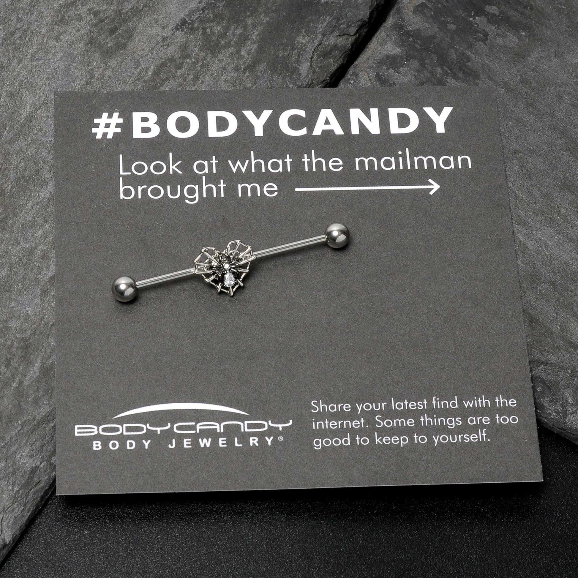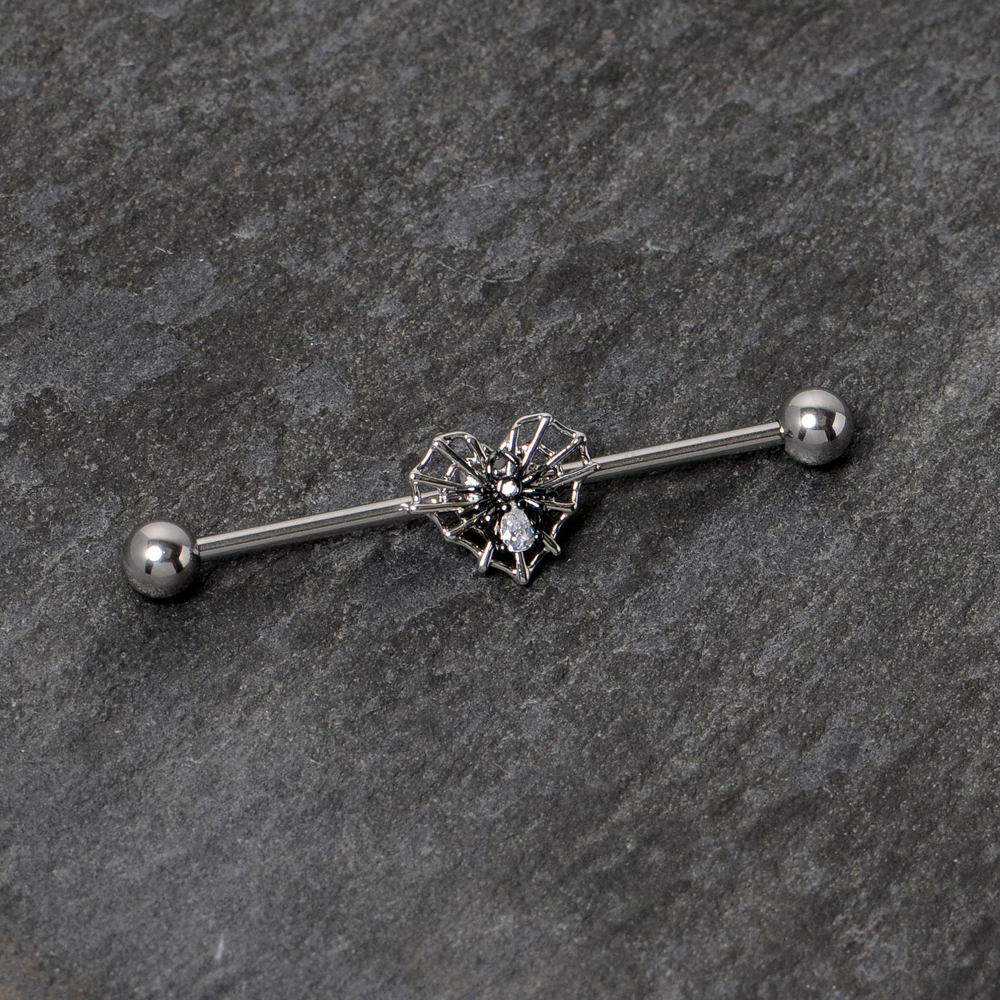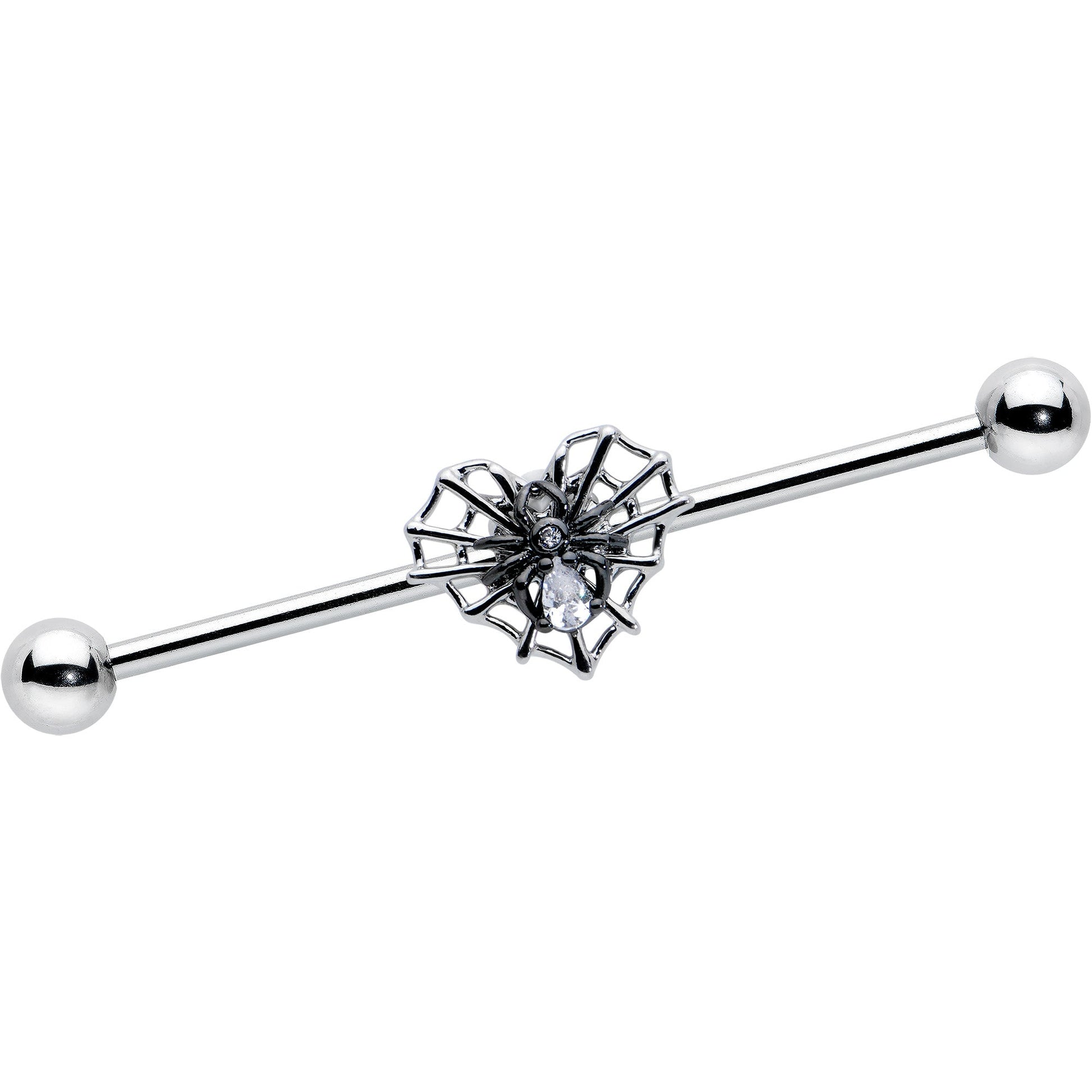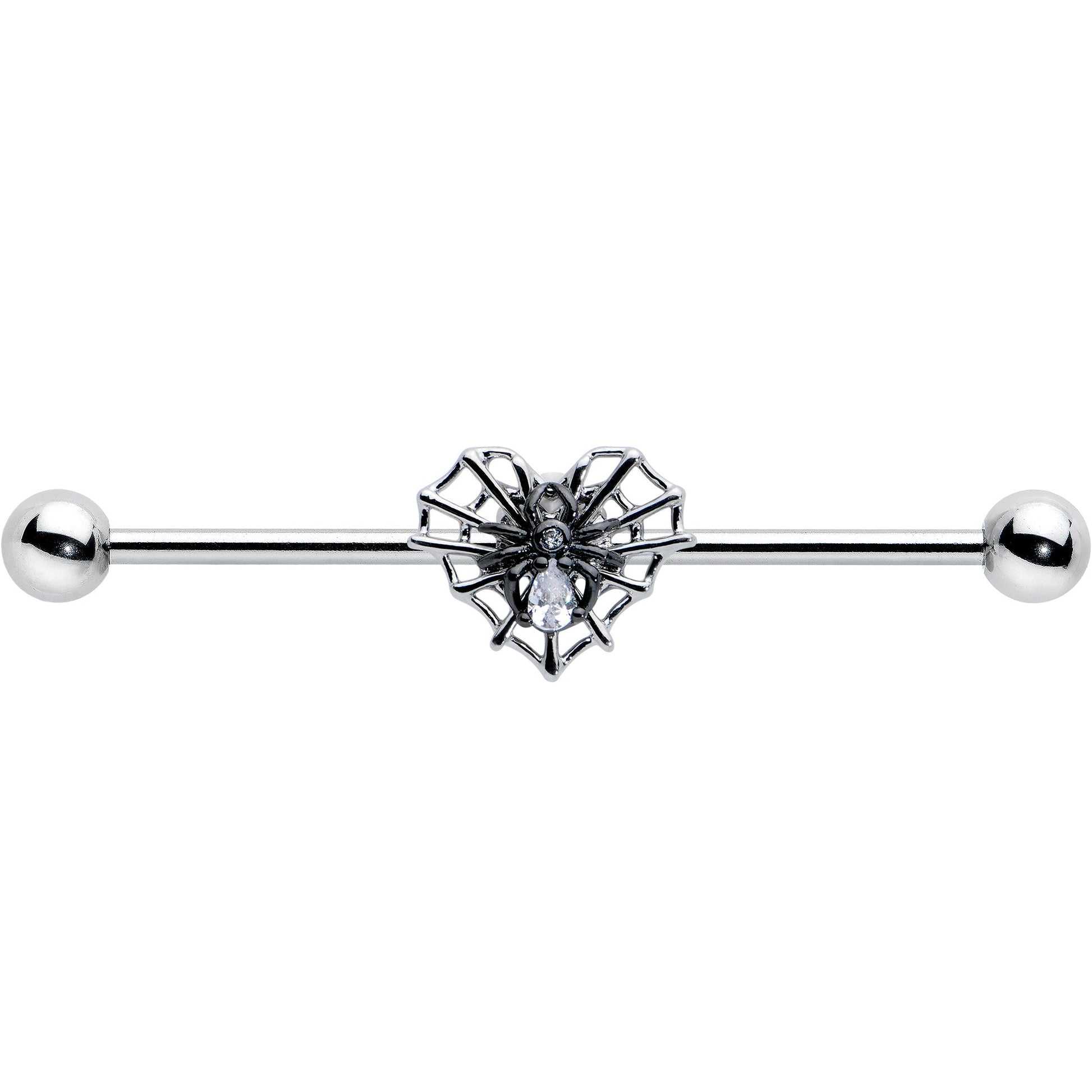 14 Gauge Clear CZ Gem Heart of Spider Industrial Barbell 38mm
