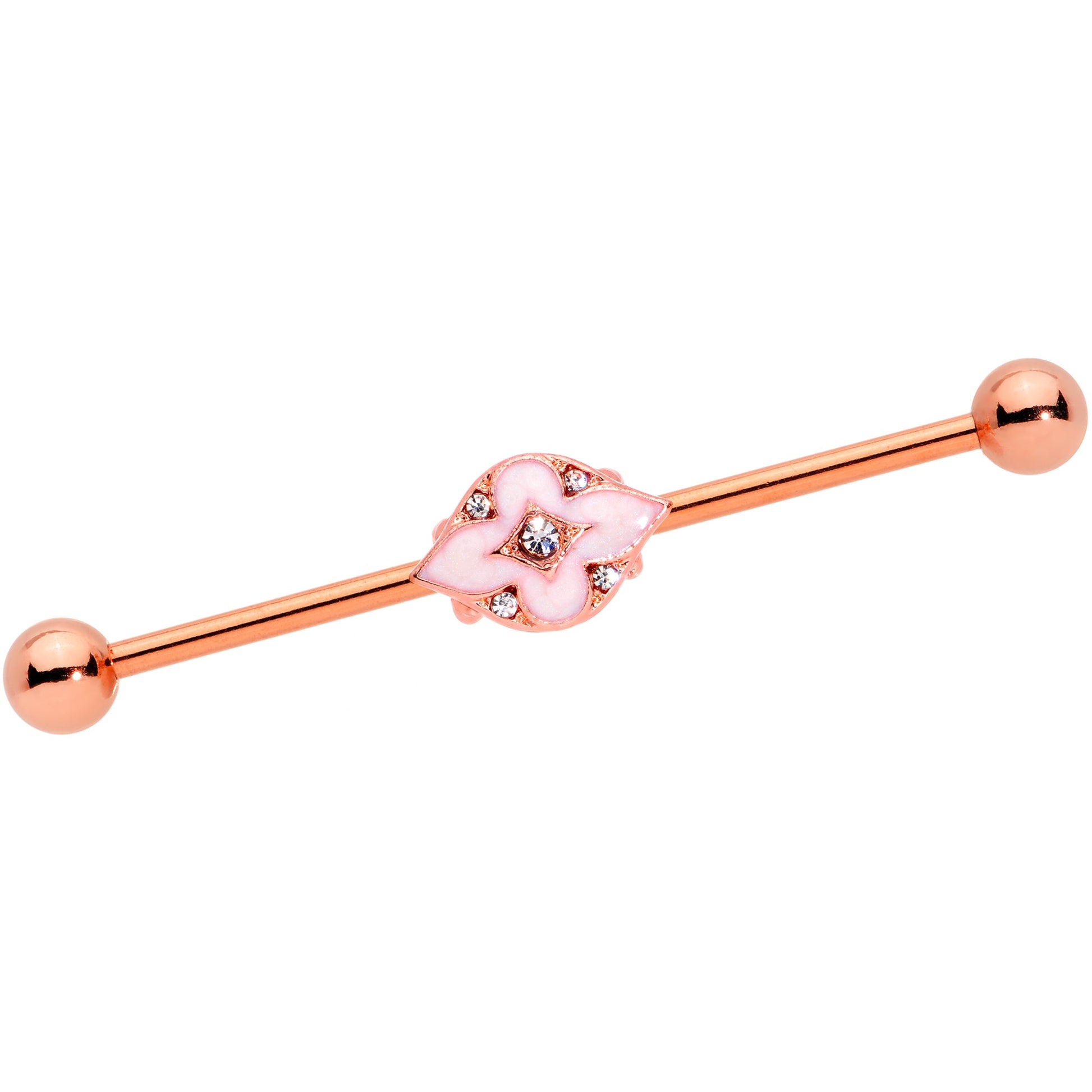 14 Gauge Clear Gem Rose Gold Tone Pink Cross Industrial Barbell 38mm