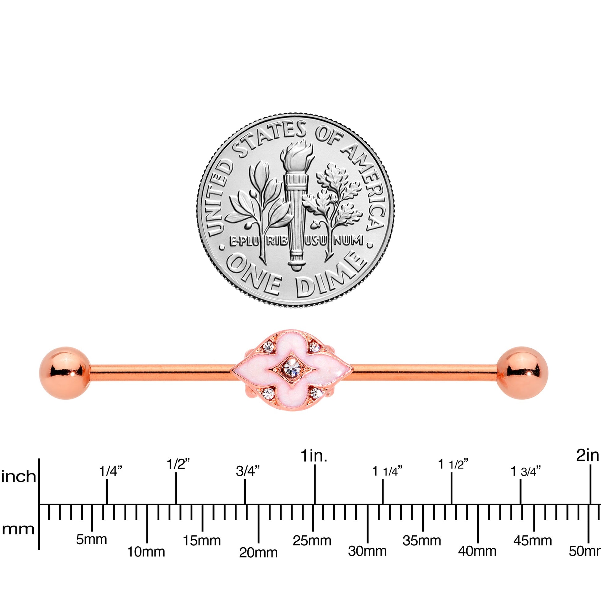14G Clear Gem Rose Gold Tone Pink Cross Industrial Barbell 38mm