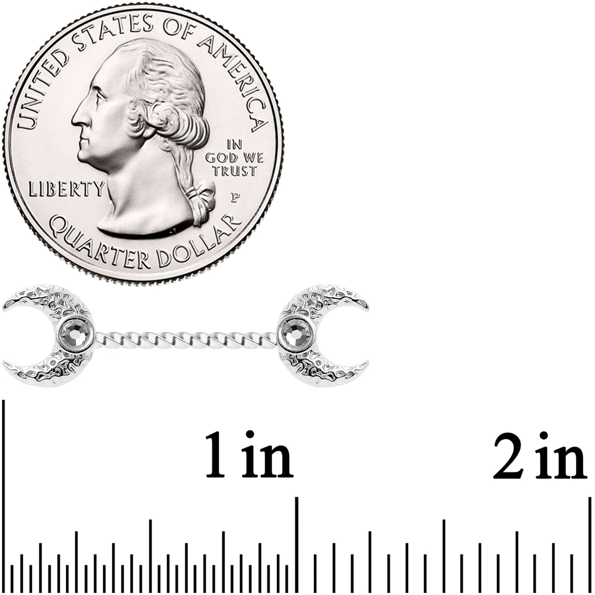 14G Clear Gem Witch Moon Twisted Barbell Nipple Ring Set