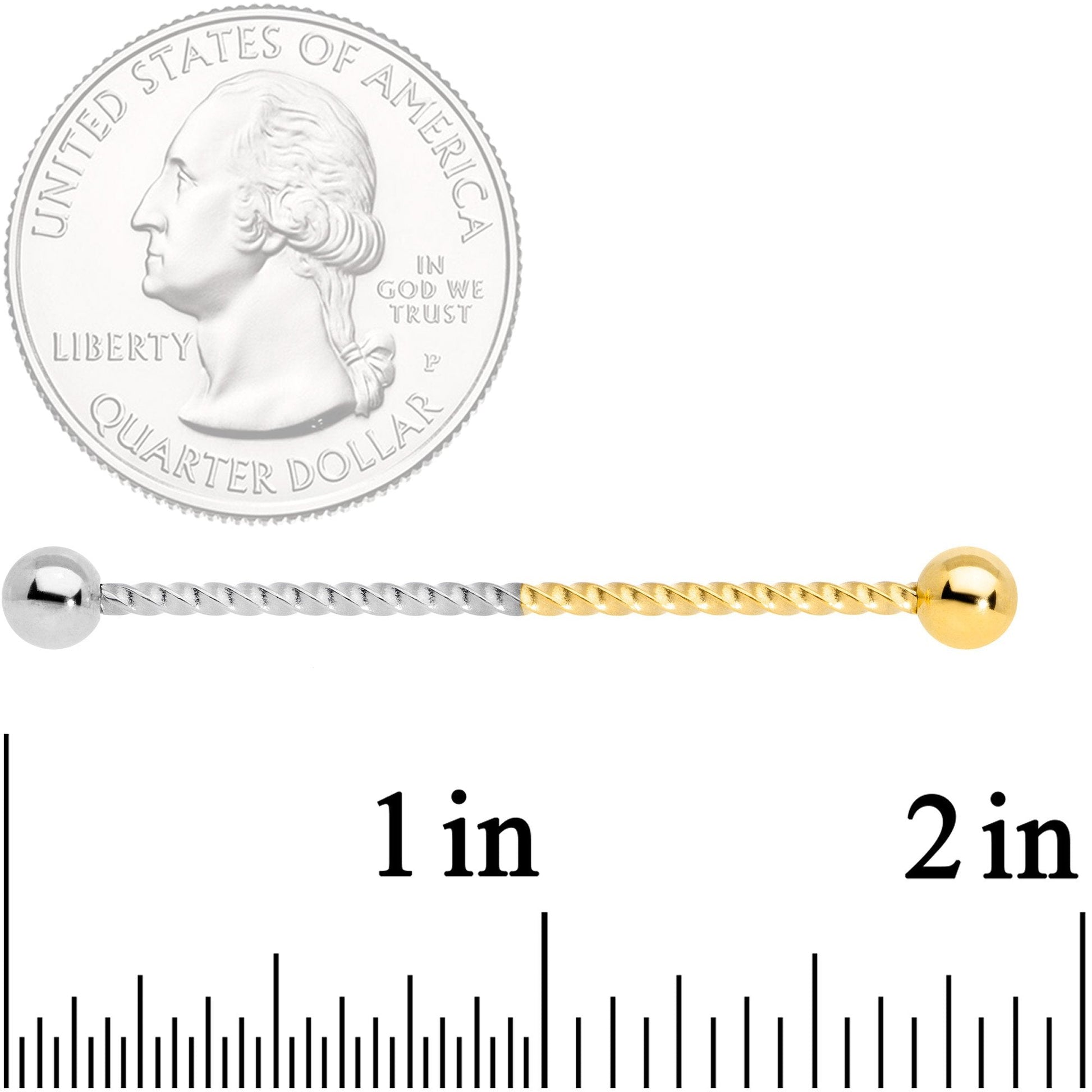 14 Gauge Gold Tone Steel Two Tone Twisted Industrial Barbell 38mm