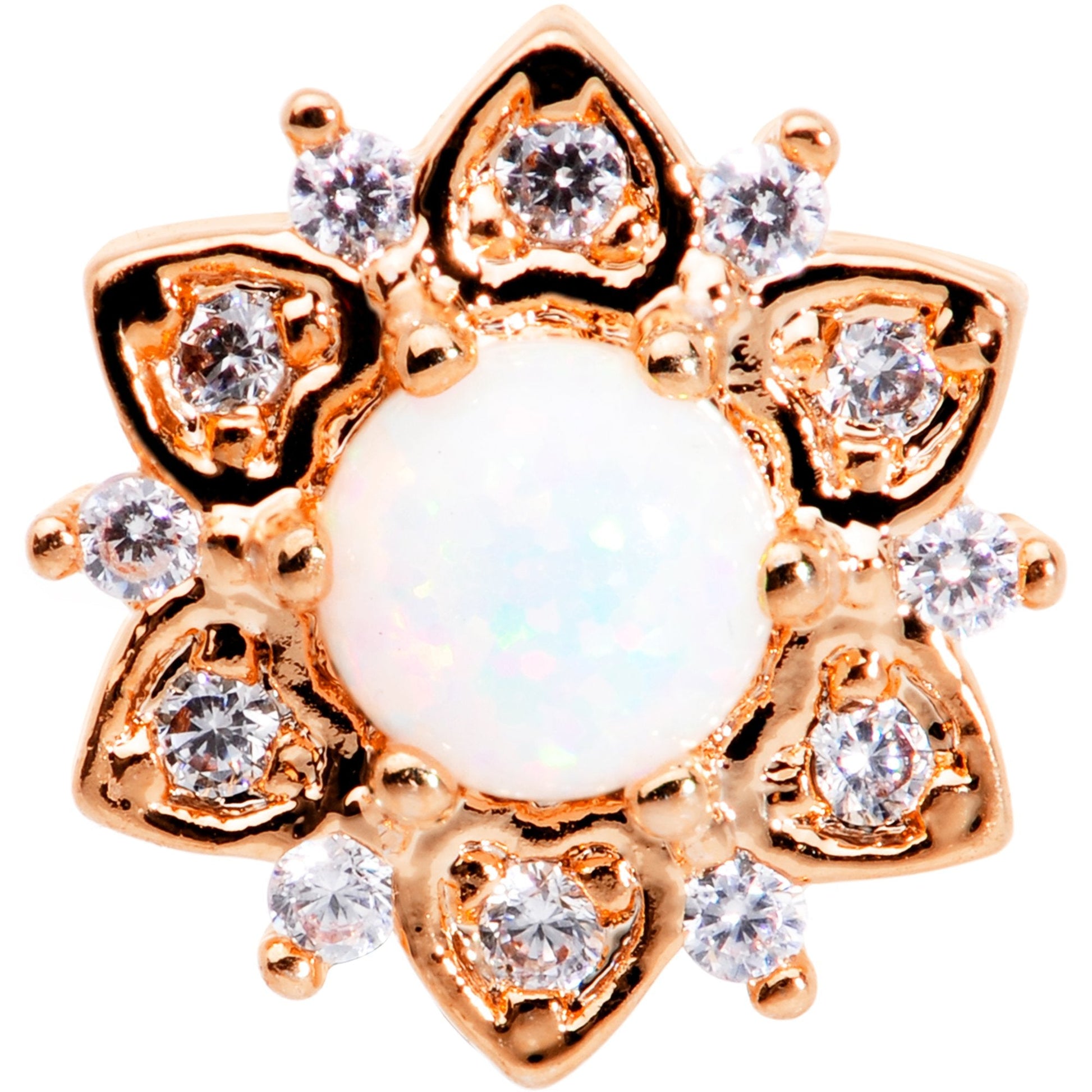 14G White Faux Opal Rose Gold Tone Floral Glam Dermal Anchor Top
