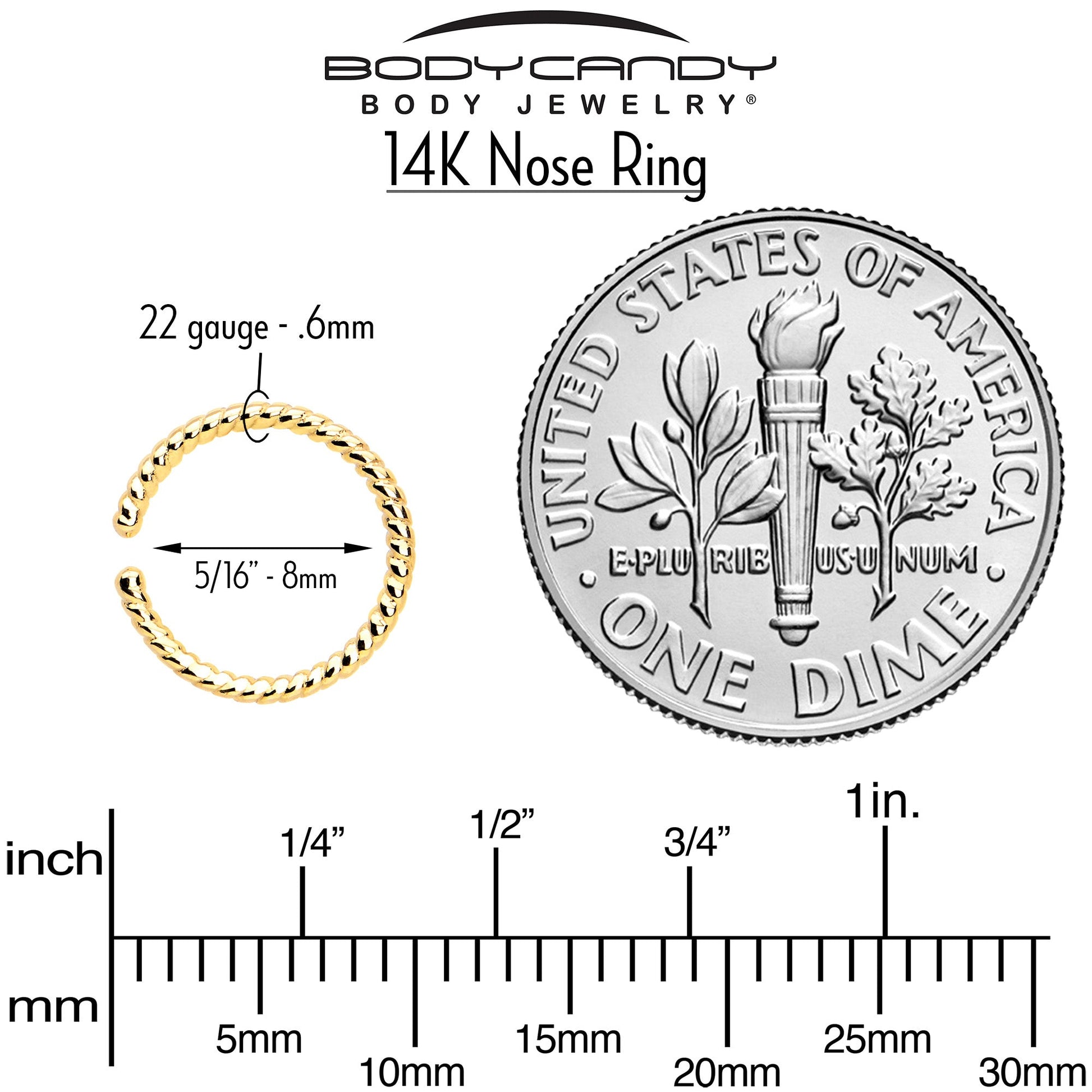 14k Yellow Gold Bendable Nose Hoop 20 Gauge 5/16 Twisted