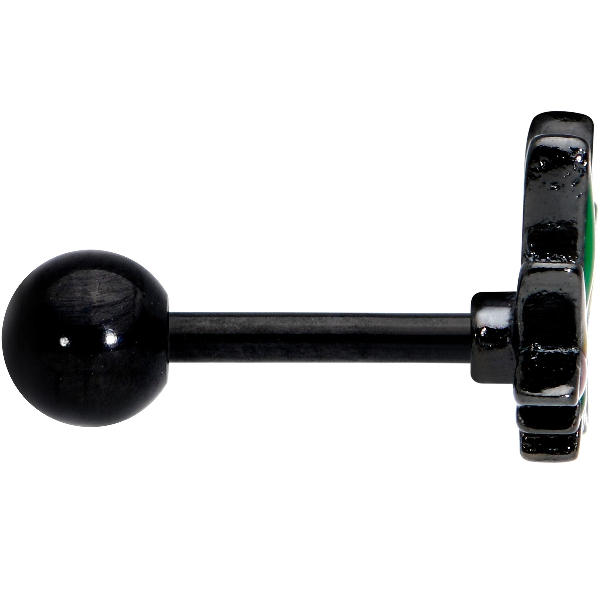 16 Gauge 1/4 Black Multicolor Pot Leaf Cartilage Tragus Earring