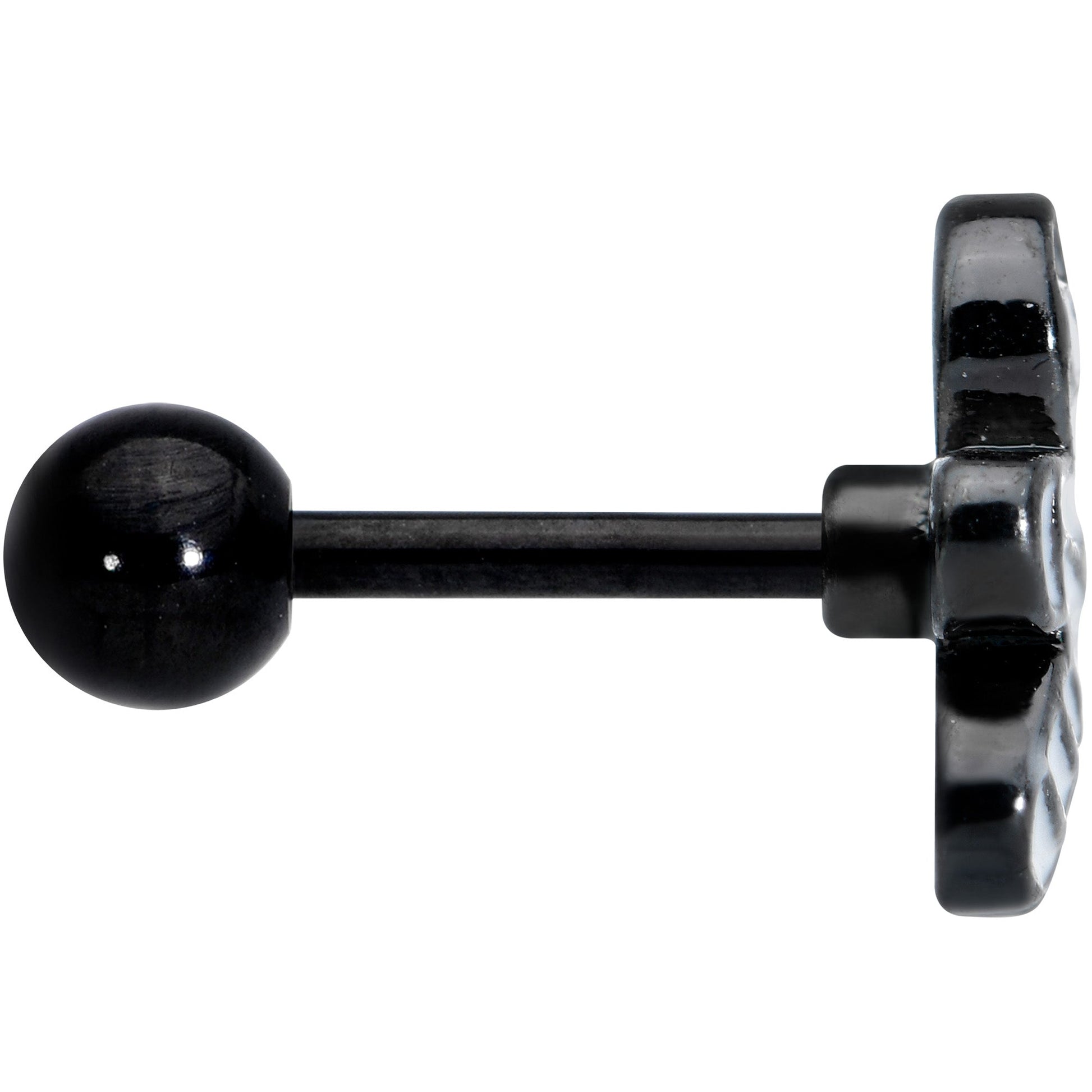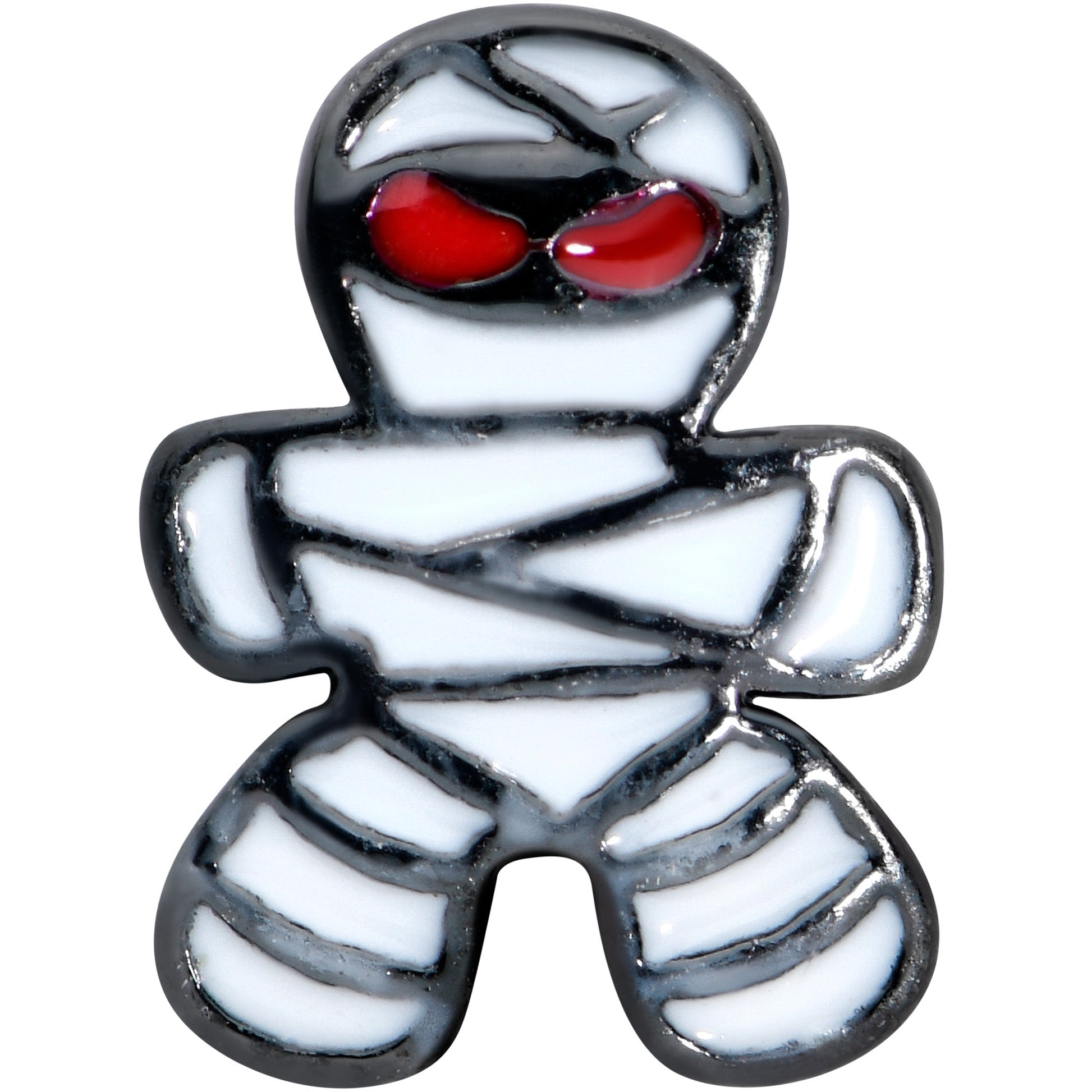 If you can't wait to share your holiday spirit this Halloween then you will love this 16 gauge tragus stud. Made with a 6mm black PVD over 316L surgical grade stainless steel straight barbell with a 4mm ball end, this cartilage stud features a red-eyed mummy charm and can be worn in piercings like the helix, tragus and some conch piercings. Happy Halloween to you!Specifications