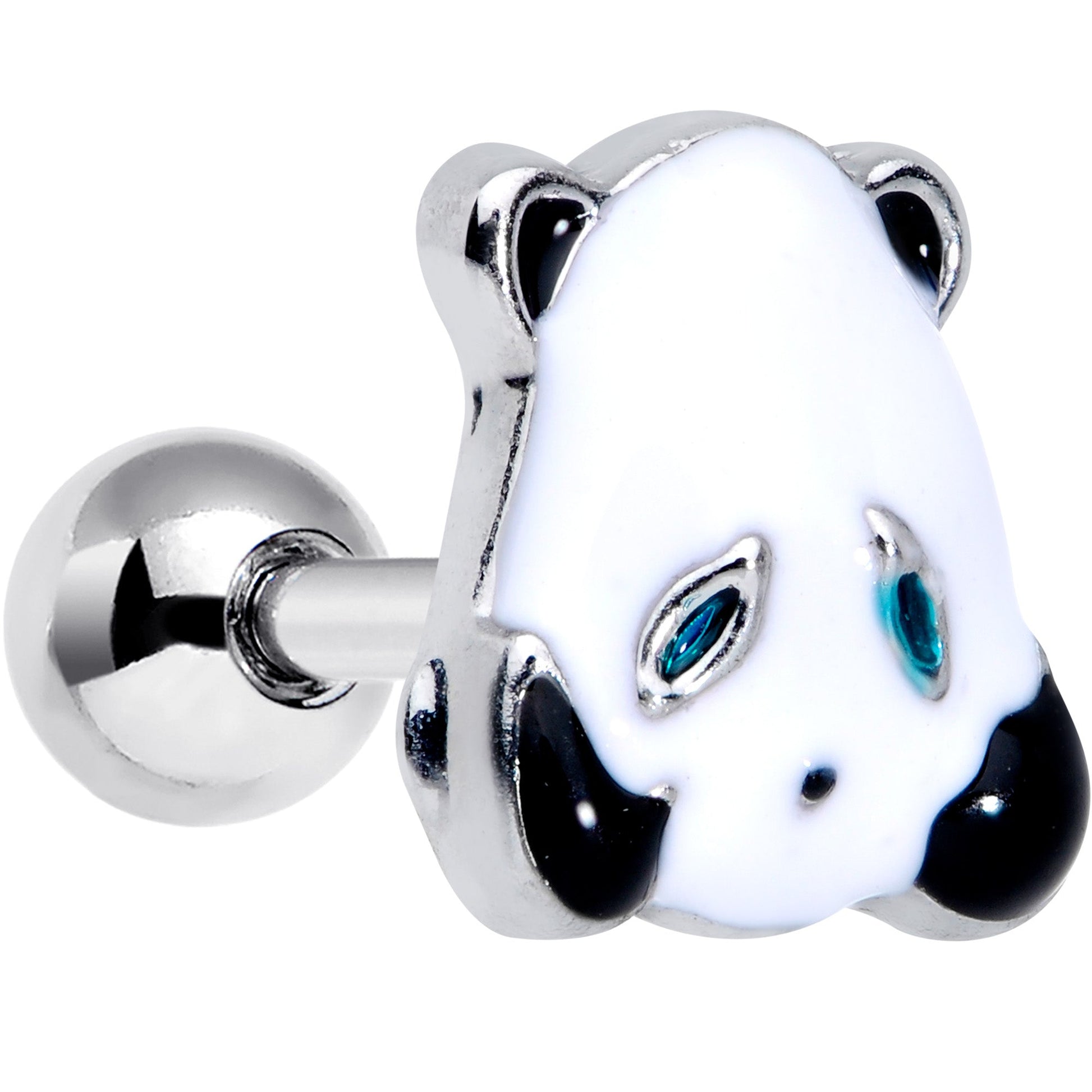 The panda on this 16 gauge cartilage stud is so round and cuddly that you won't be able to resist it! This tragus piercing is made with a 6mm durable 316L surgical grade stainless steel straight barbell with a 4mm ball end. The front features a black and white panda bear charm. And this sweet critter can find a home in multiple piercings including helix, tragus, and some conch piercings! If you're passionate about pandas and want to show off your love of these endangered critters, there's no better way than to wear their fetching little faces in your cartilage piercing!Specifications