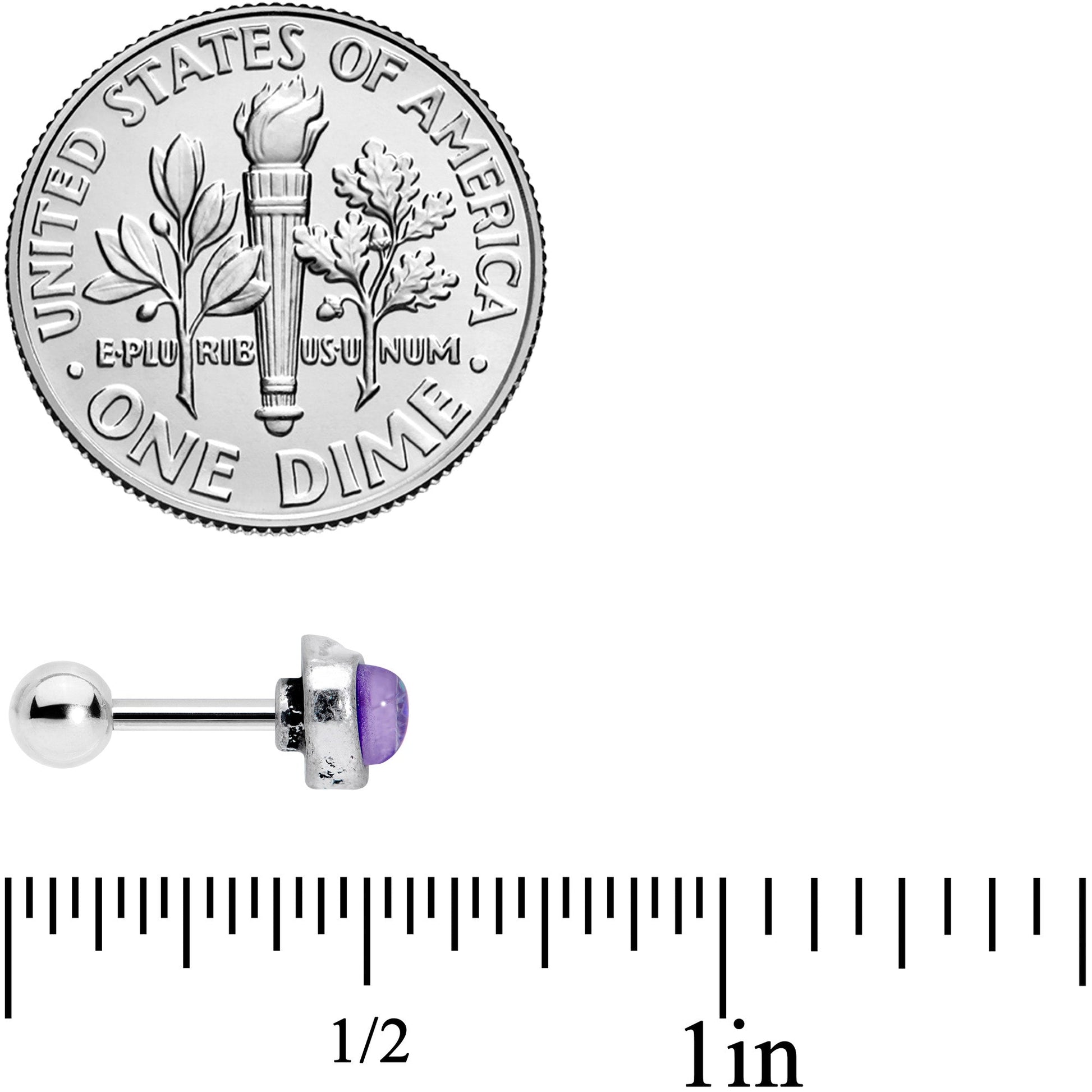 16 Gauge (1.2mm), 1/4" (6mm), 316L Surgical Grade Stainless Steel Straight Barbell, Faux Opal, 4mm Ball End