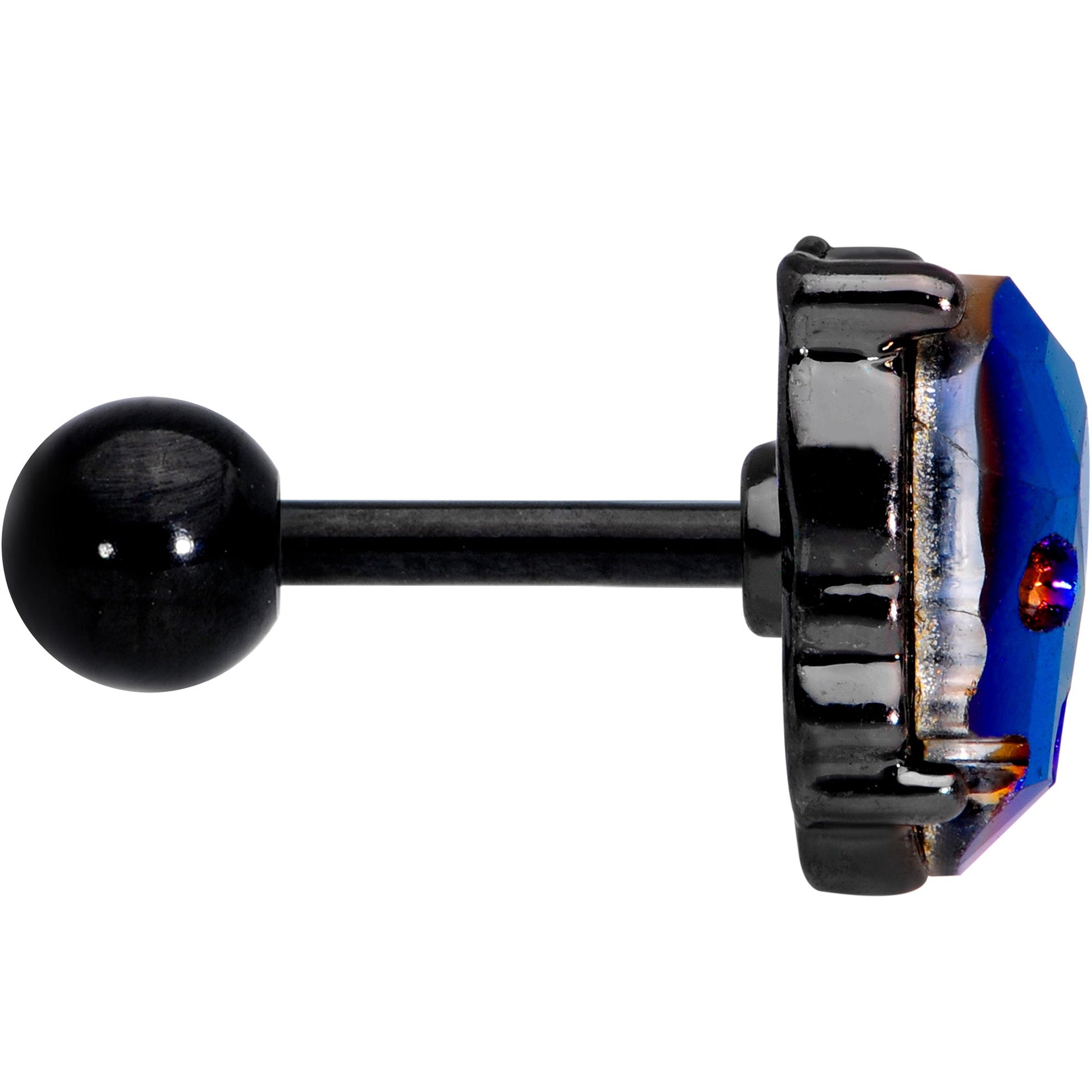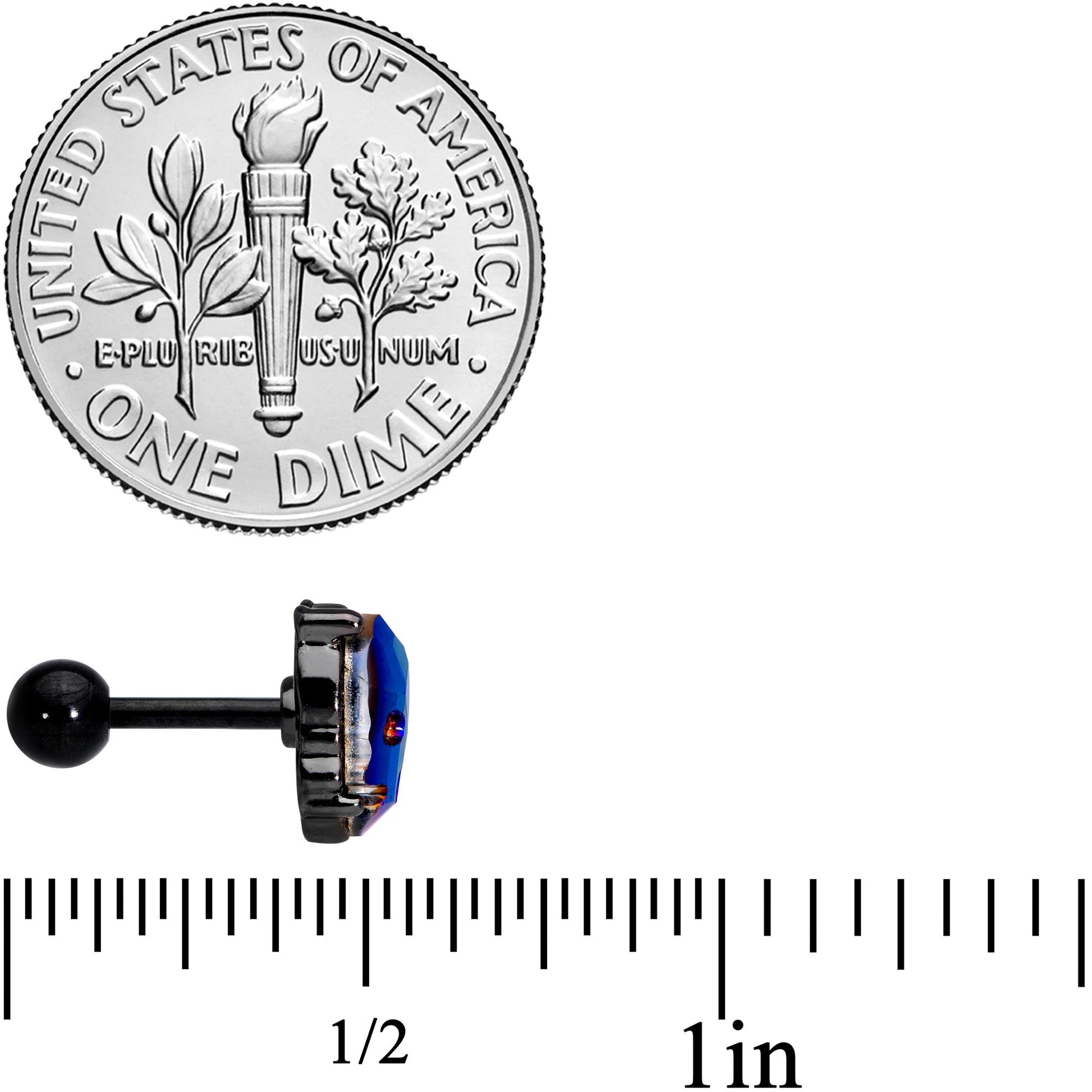 Creepy. cool, and totally captivating! This 16 gauge tragus stud is made with a 6mm black PVD over 316L surgical grade stainless steel straight barbell with a 4mm ball end. It features a faceted sugar skull charm composed of a single purplish-blue gem. And you can sport this skull in multiple piercings including tragus, helix, and some conch piercings. Perfect for Halloween, Dia de los Muertos, or any time you want to add some color to your cartilage piercing!Specifications