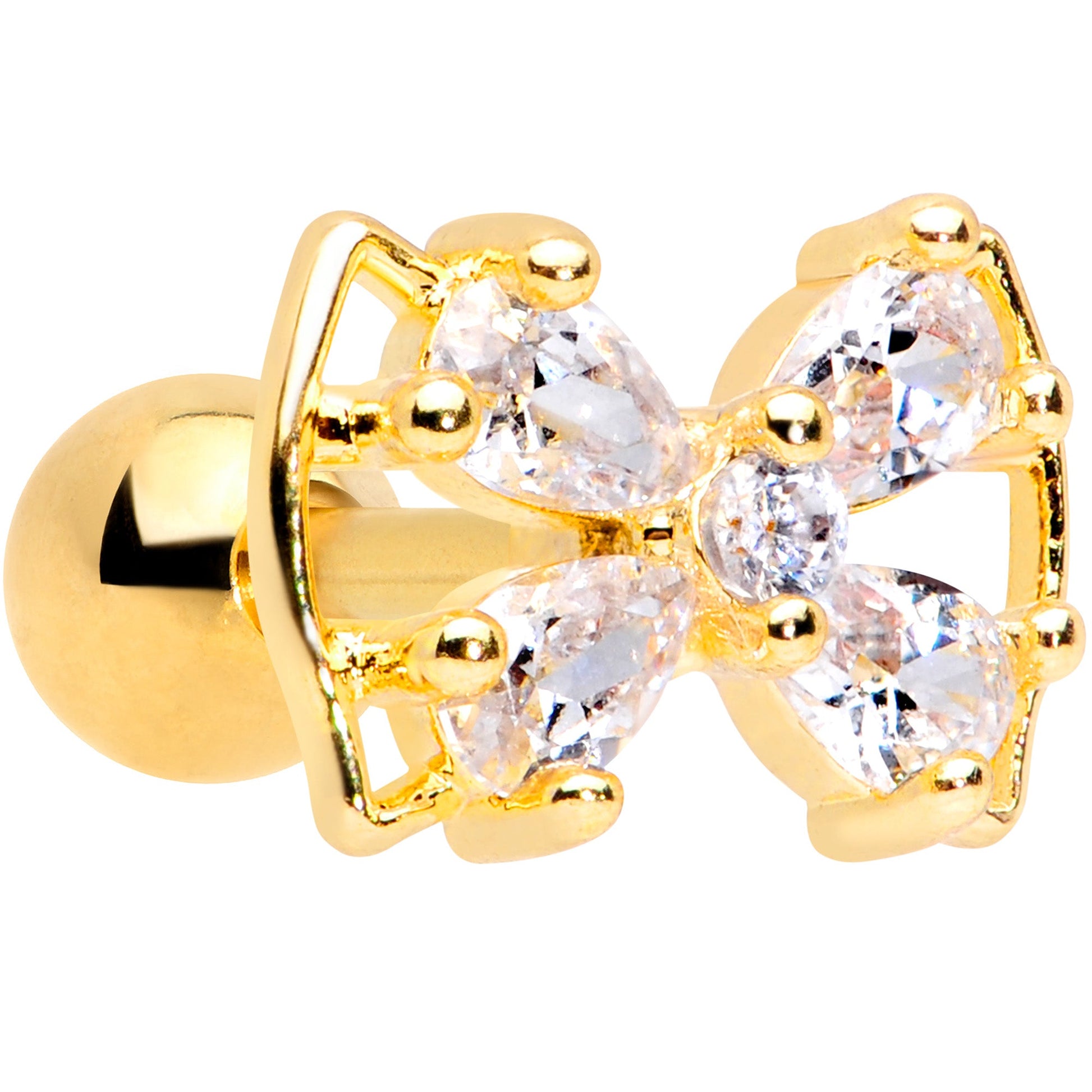 16G 1/4 Clear CZ Gem Gold Tone Beauty Bow Cartilage Tragus