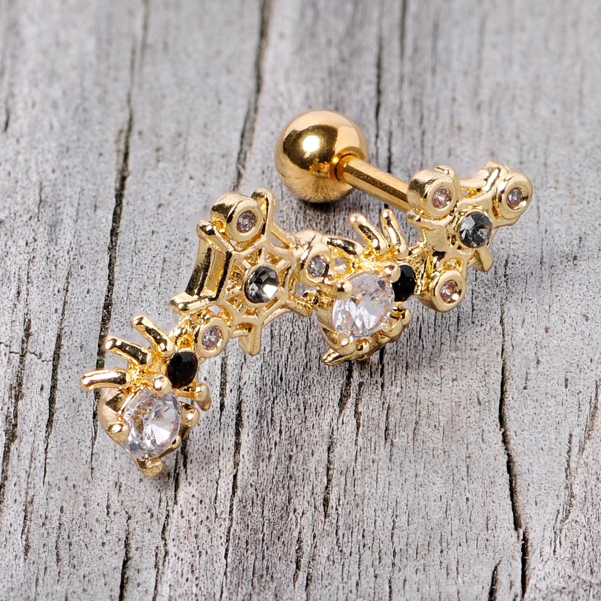 16G 1/4 Clear CZ Gem Gold Tone Spider Halloween Cartilage Tragus