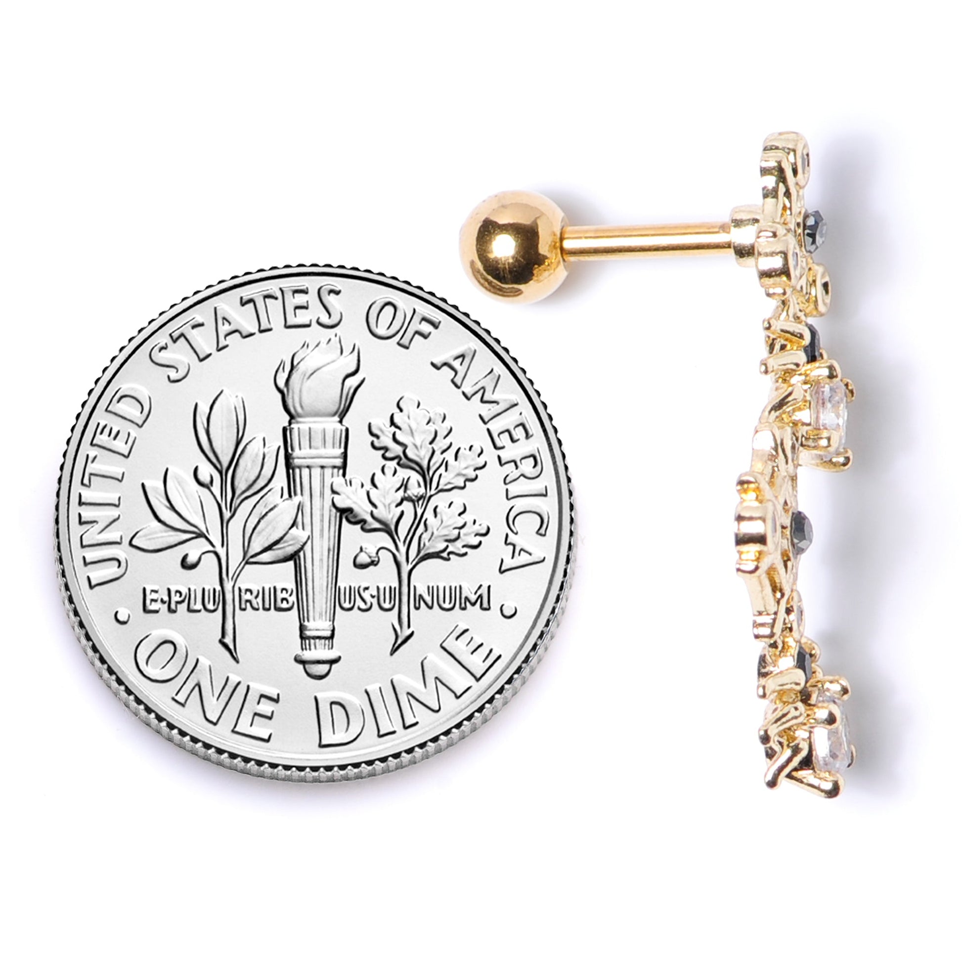 16 Gauge 1/4 Clear CZ Gem Gold Tone Spider Halloween Cartilage Tragus