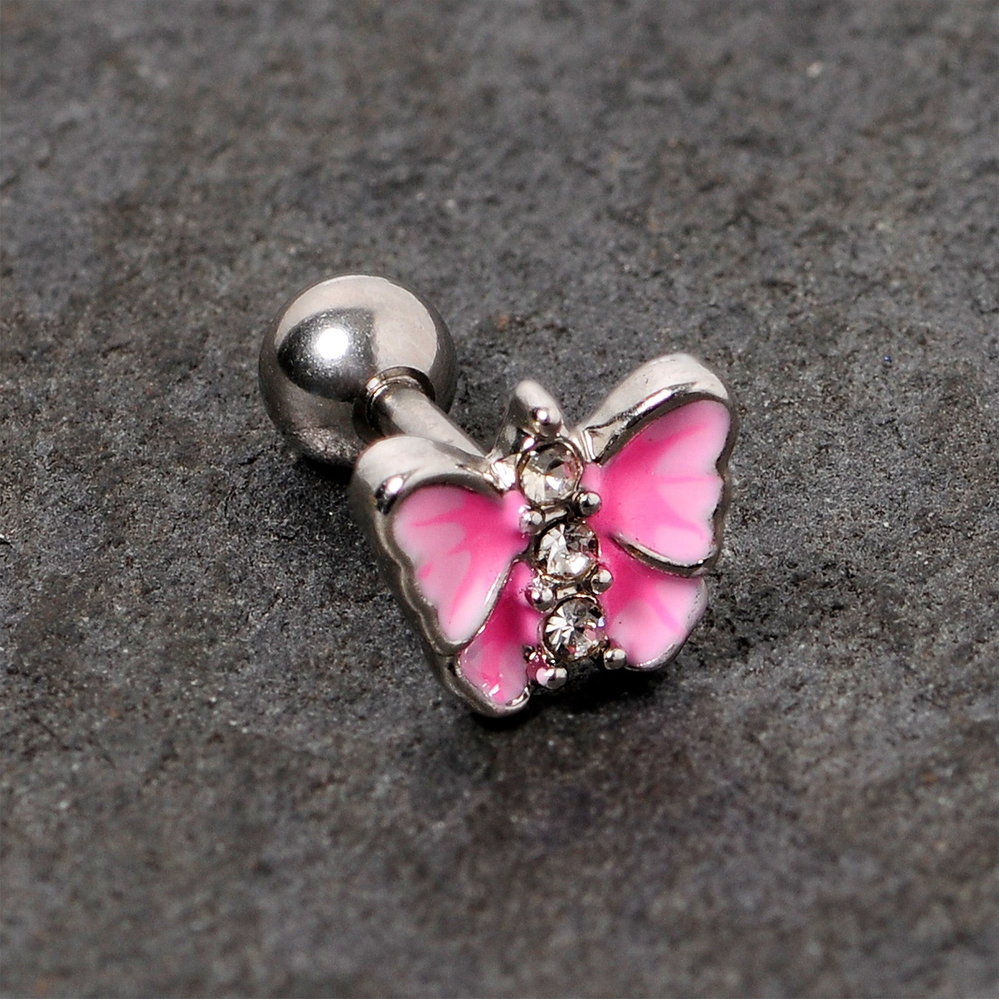 16G 1/4 Clear Gem Pink Butterfly Cartilage Tragus Earring