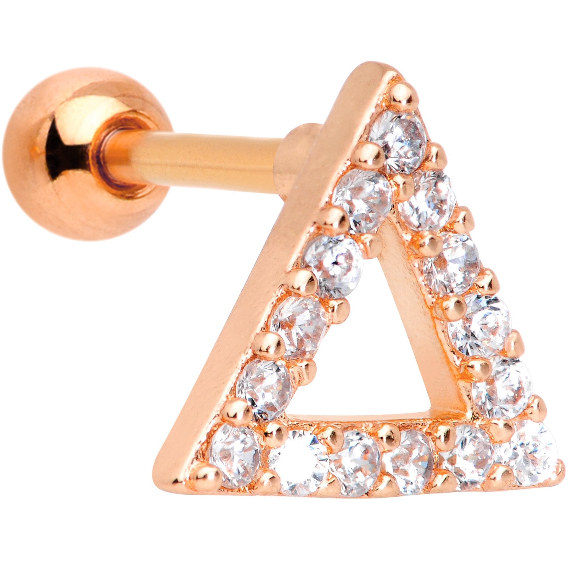 16 Gauge 1/4" Clear Gem Rose Gold Tone Triangle Cartilage Tragus