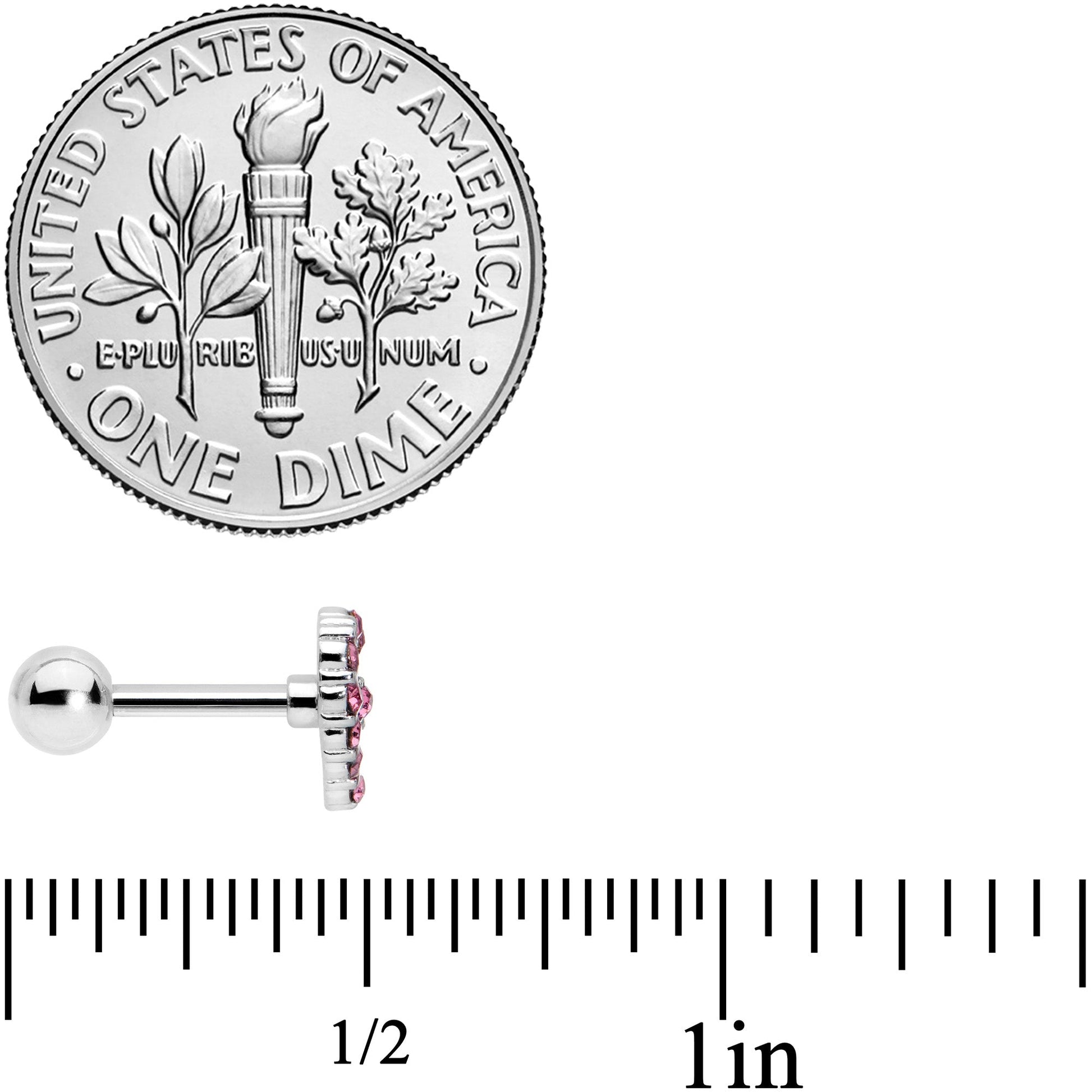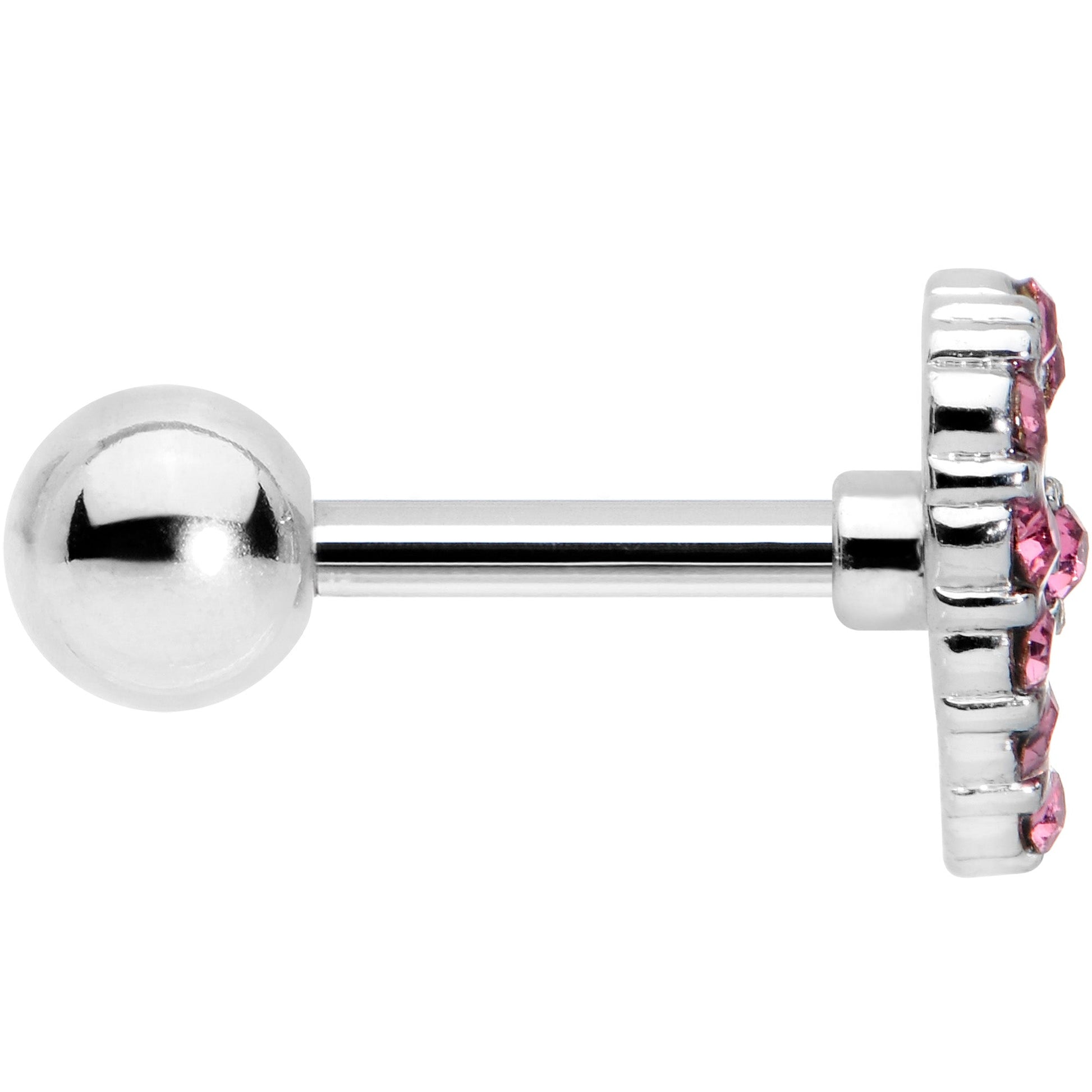 Keep your heart open and good things will bloom - like on this 16 gauge tragus stud! It's made with a 6mm durable 316L surgical grade stainless steel straight barbell with a 4mm ball end. It features a hollow heart charm, with one side of the heart set with pink gems. At the heart's center is a small openwork flower with a single pink gem at its center. You can even rock it in multiple piercings including tragus, helix, and some conch piercings. For the incurable romantic, this floral valentine's cartilage stud is sure to make you fall in love!Specifications