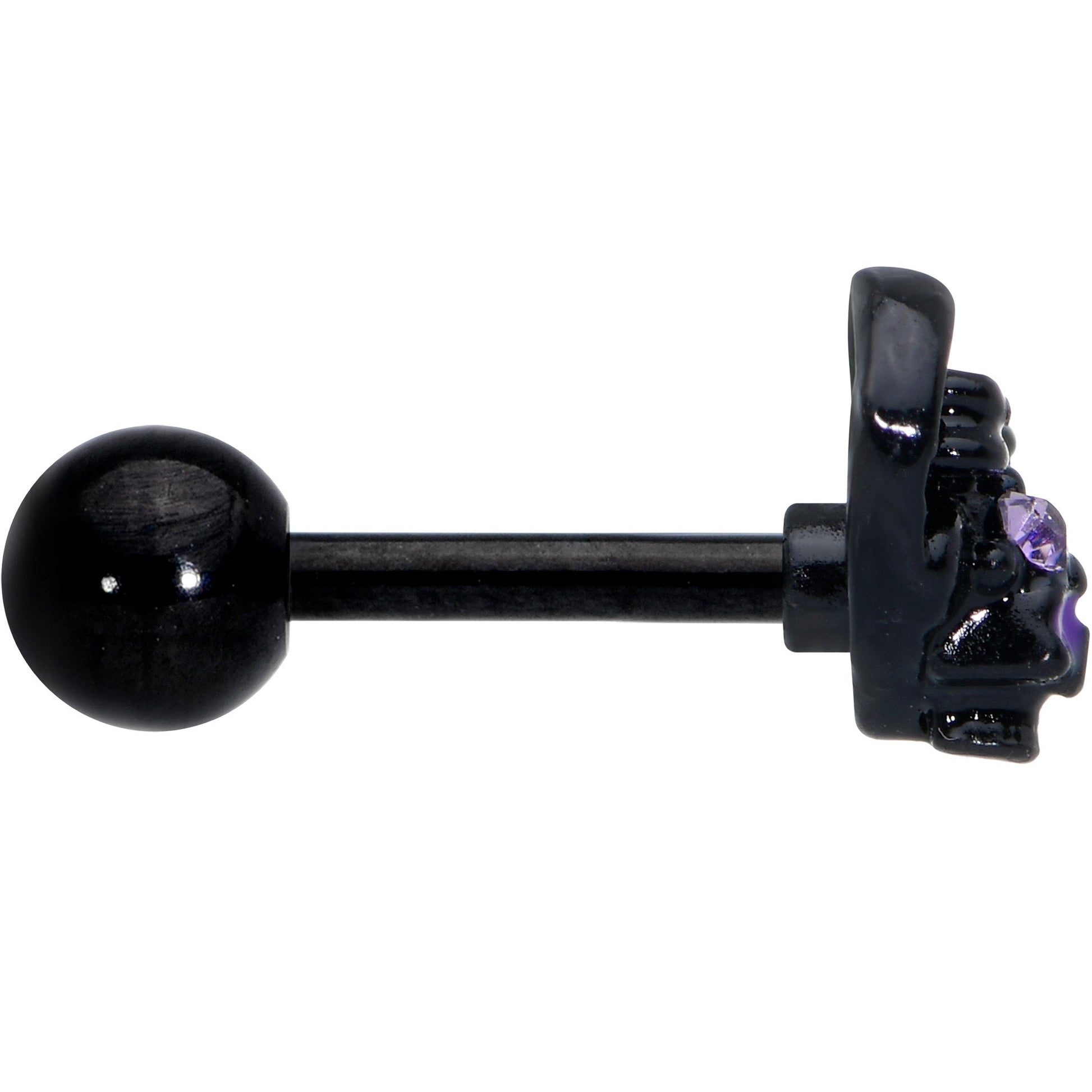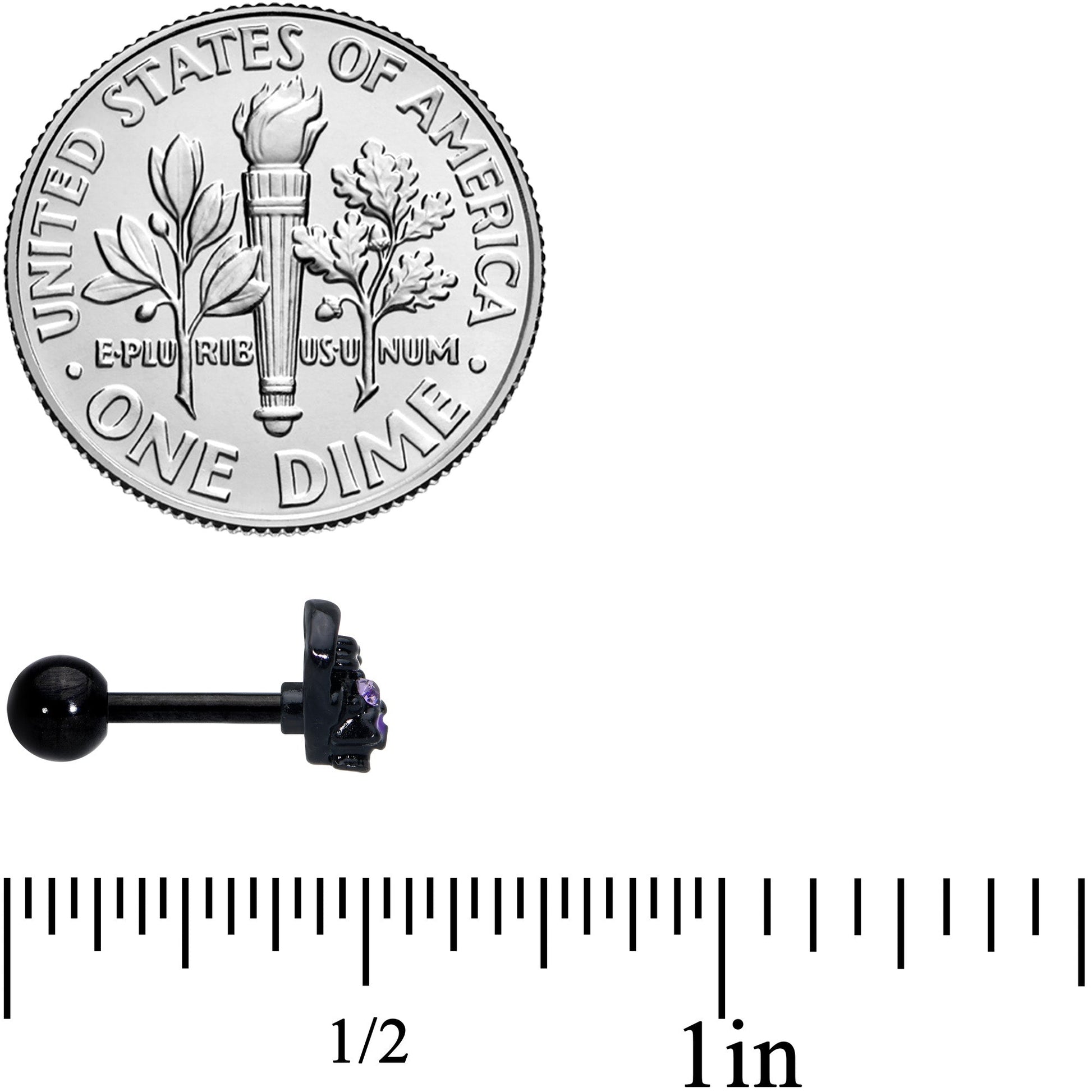 16 Gauge 1/4 Purple Gem Black Heart Skull Bow Cartilage Tragus Earring