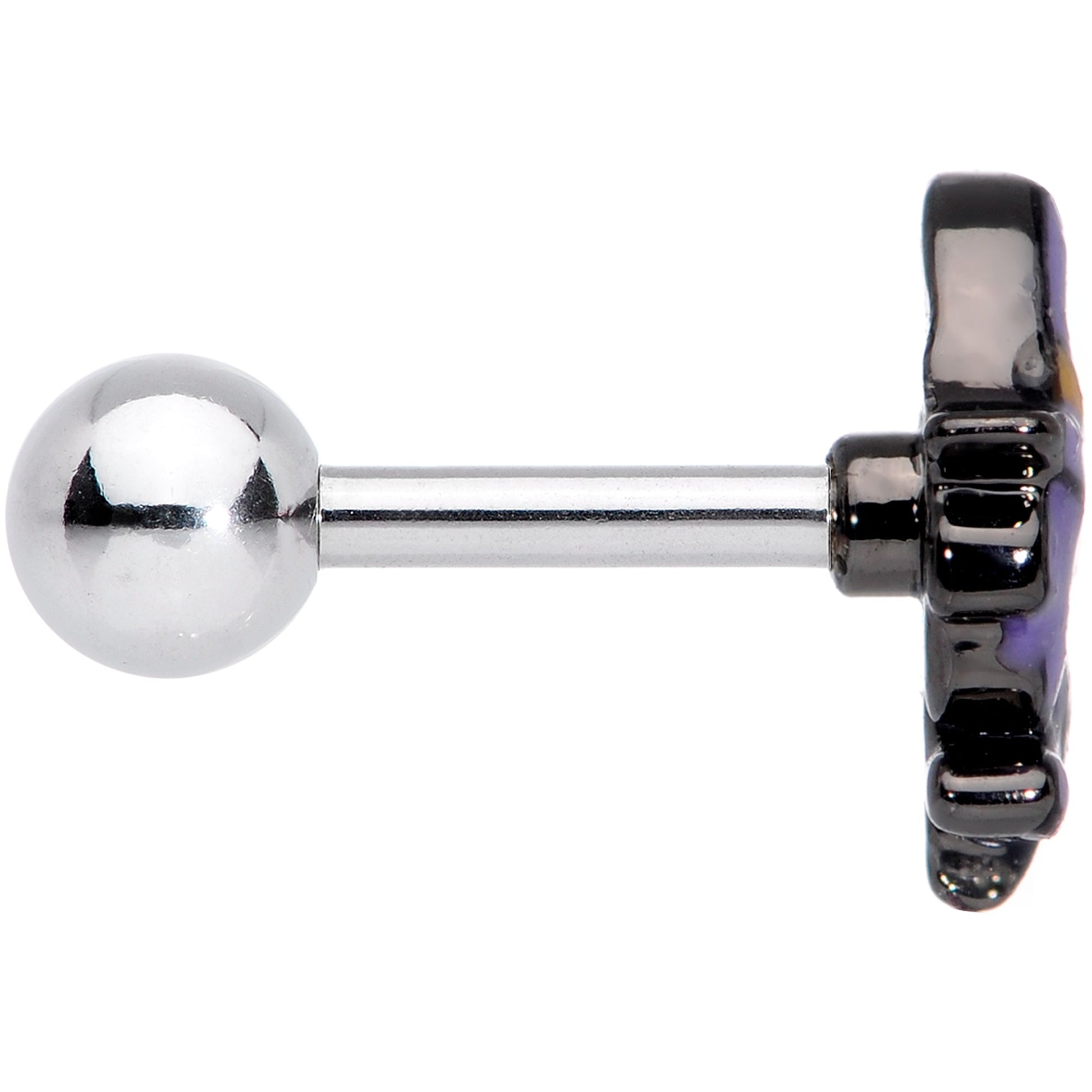 If you want something spooky to wear in your helix piercing this Halloween then you will love this 16 gauge cartilage stud! Made with a 6mm black plated over 316L surgical grade stainless steel straight barbell, this tragus stud features purple witch charm that can be worn in a variety of cartilage piercings including the helix and tragus too!Specifications