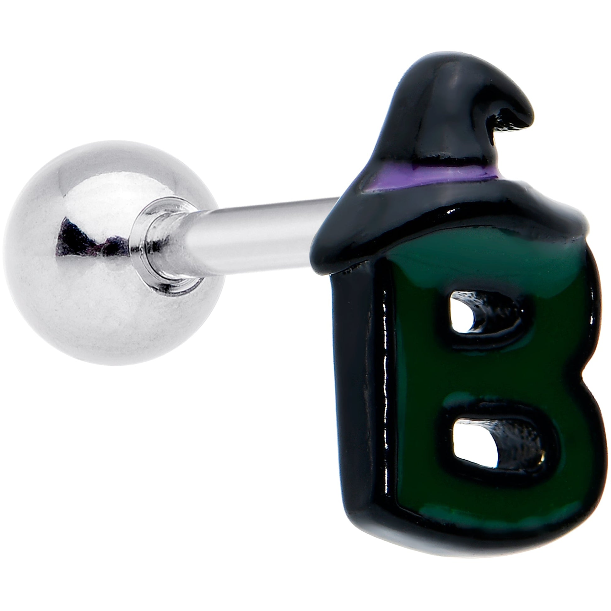 Put the "B" in "witch" this Halloween with this set of 16 gauge tragus studs! They're made with 6mm durable 316L surgical grade stainless steel straight barbell with 4mm ball ends. One features a ghost charm, with the ghost dressed in a tuxedo and ready to serve you! The second features a jack o'lantern charm, with an angry expression on its detailed face. The third one features the letter "B" charm in green, wearing a witch's hat perched on the top. You can even wear these in multiple piercings including tragus, helix, and some conch piercings. You'll be the best dressed "B" this Halloween when you're rocking these whimsical cartilage studs. Sold as a set of three.Specifications