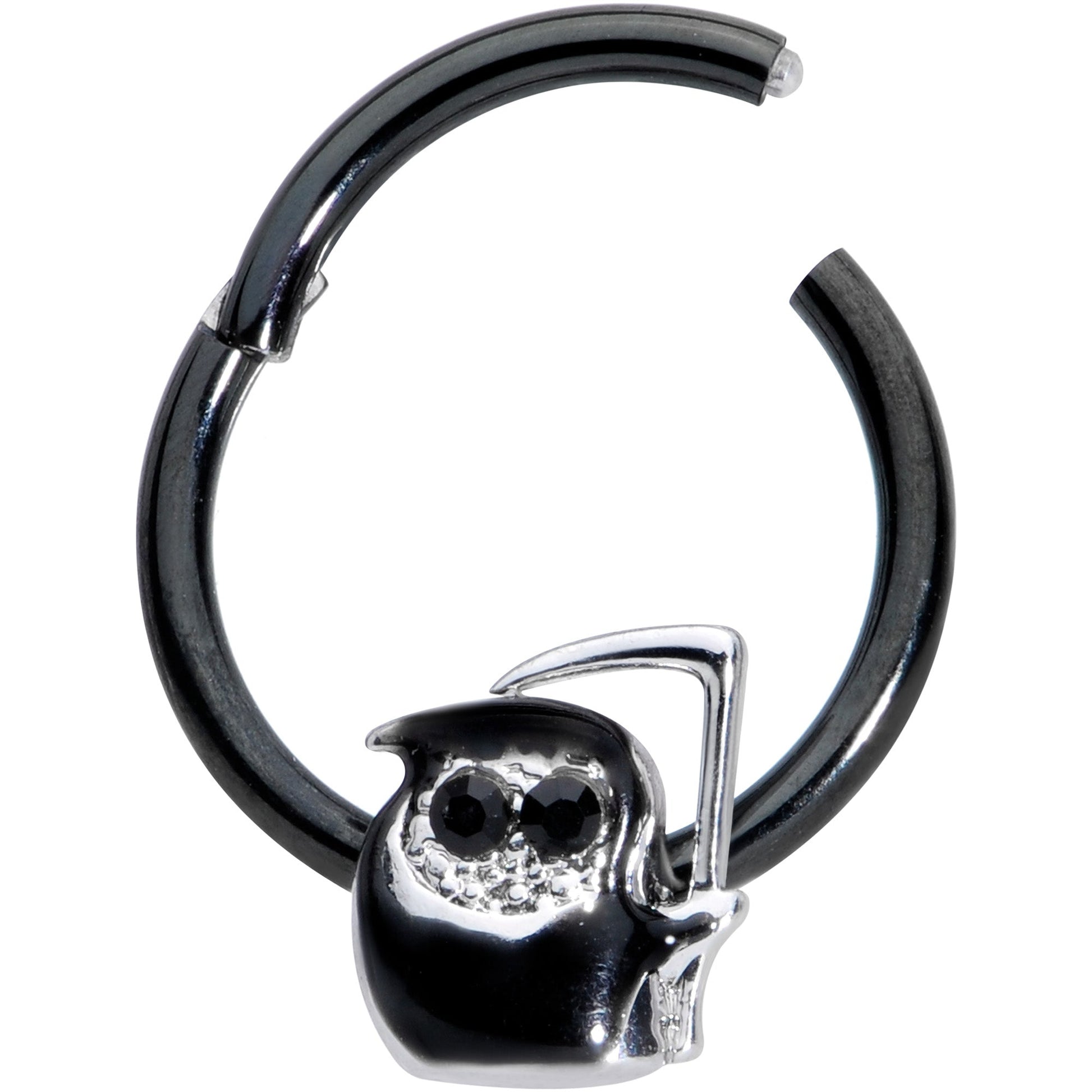 16G 3/8 Black Gem Grim Reaper Halloween Hinged Segment Ring