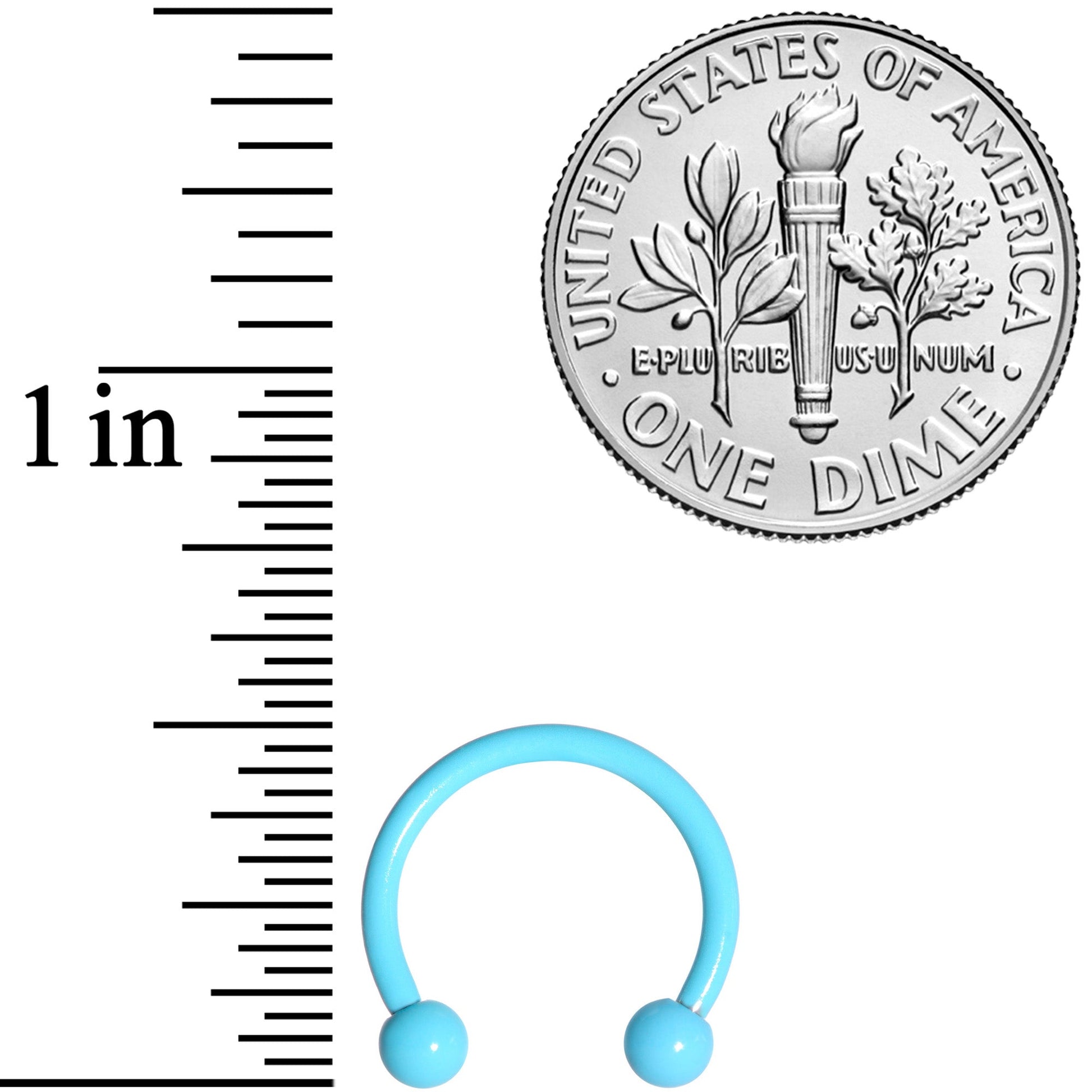 This 16 gauge universal body jewelry just goes to show that simple never has to be boring! These horseshoe rings are made with 10mm light blue plated over 316L surgical grade stainless steel circular barbells and have 3mm ball ends. The rich color is made even more fascinating when you turn out the lights.....they glow in the dark! All the better to show off your piercings! And this horseshoe jewelry can be worn in a variety of piercings including cartilage, nipples, lip, and stretched ear piercings! You won't run out of uses for these beautifully basic baby blue body piercing rings! Sold as a set of two.Specifications
